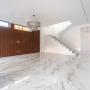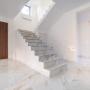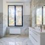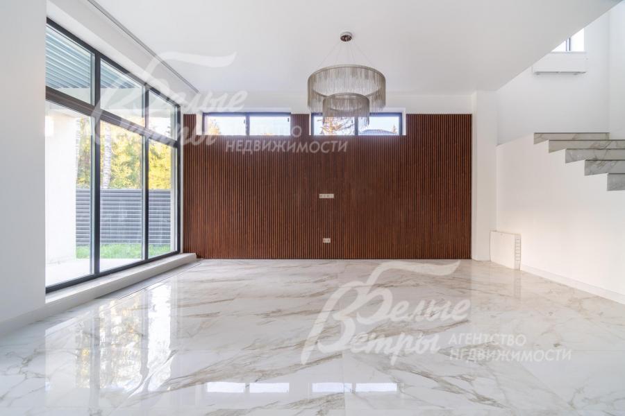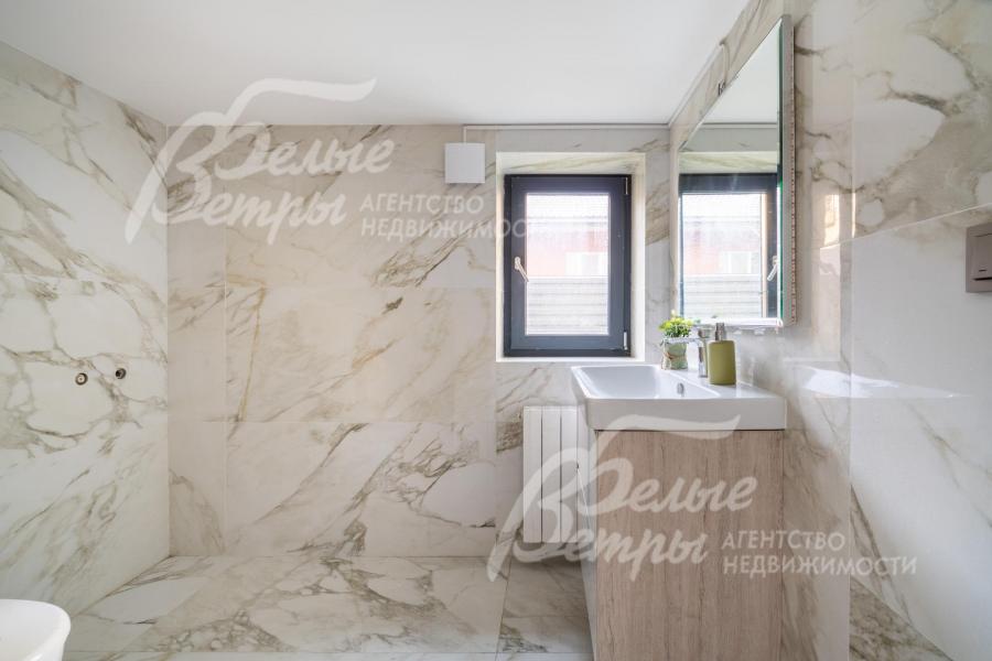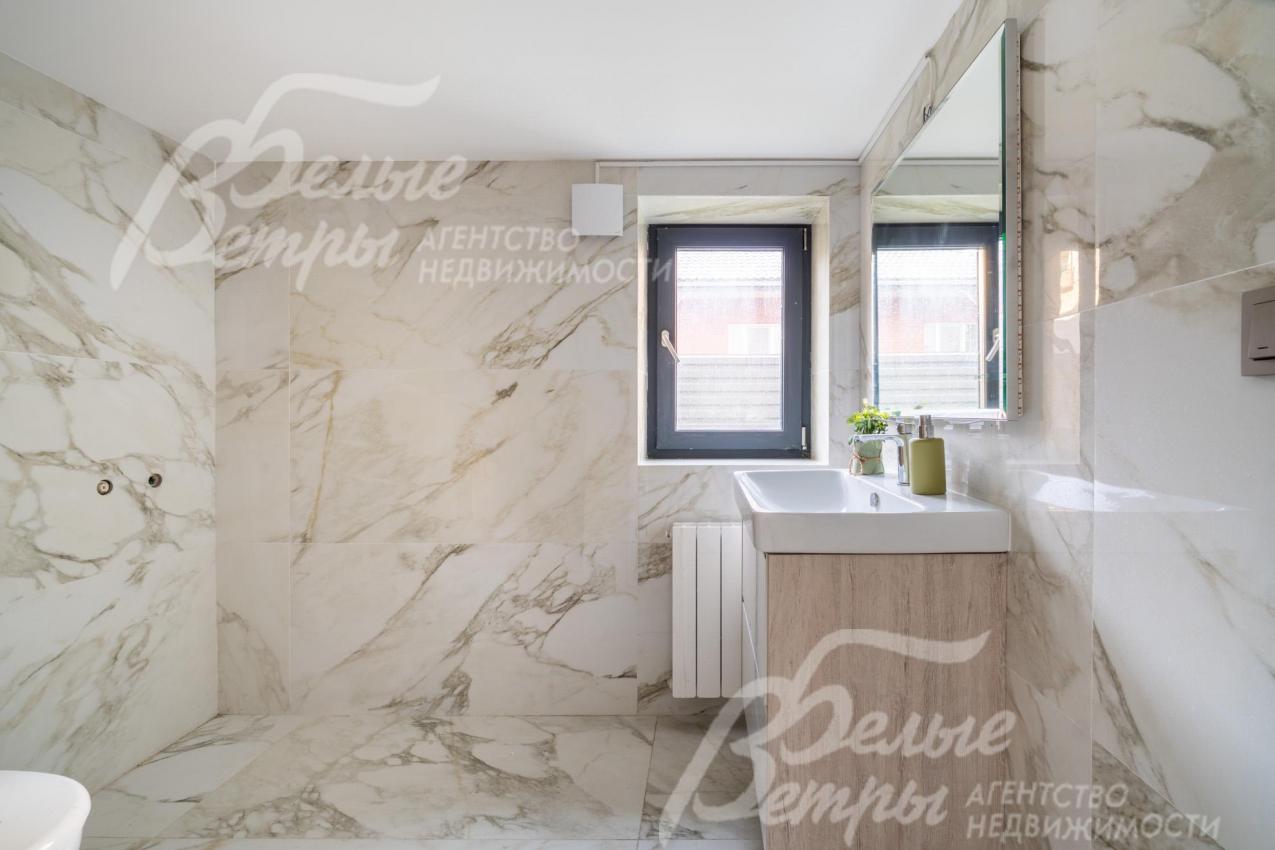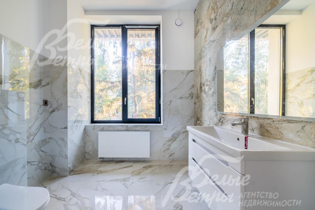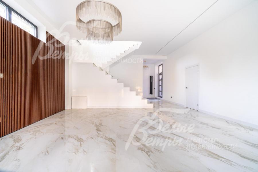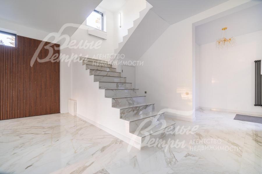 Описание внутренней отделки: стены окрашены, на полу керамогранит в общих помещениях и с/у, ламинат в спальнях и холле 2 этажа. Лестница бетонная широкая, ступени отделаны керамогранитом. Натяжные потолки. Все коммуникации разведены, теплые полы на 1 этаже, радиаторы стальные везде, внутрипольные конвекторы на 1 этаже. Сантехника установлена.