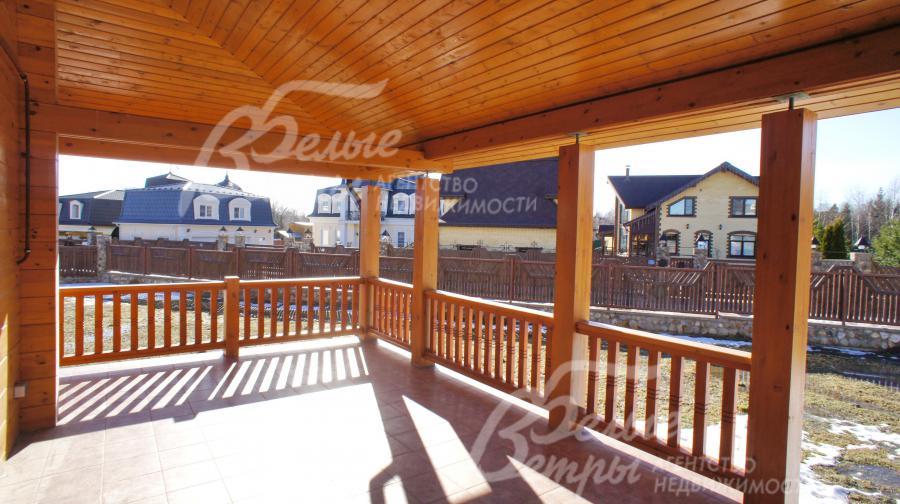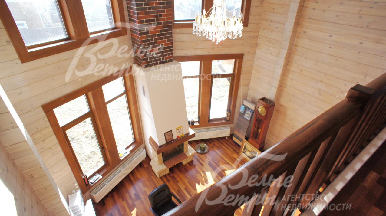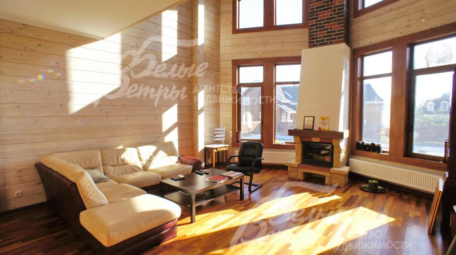 Описание внутренней отделки: Дом построен по проекту " Полярный". Полы на 1м этаже покрыты ламинатом, на кухне, террасе, в санузлах и тех.помещениях - плиткой. Потолки деревянные. Лестница деревянная (лиственница). Двери шпонированные. Камин отделан камнем песчаником.
