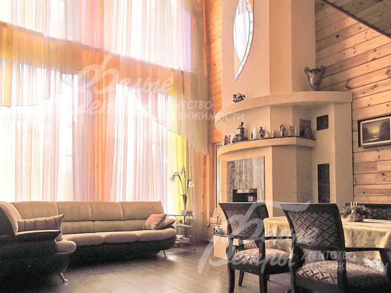 Описание внутренней отделки: отделка внутренних стен - клееный брус. Дом построен на базе проекта «Корвет» - расширенная версия. Полы покрыты плиткой с водяным подогревом на 1-м этаже, в жилых зонах паркетная доска, в с/у и тех.помещениях- плитка. Лестница из дерева. Подоконники деревянные (сосна).. Камин с декоративными вставками из мрамора