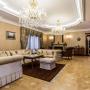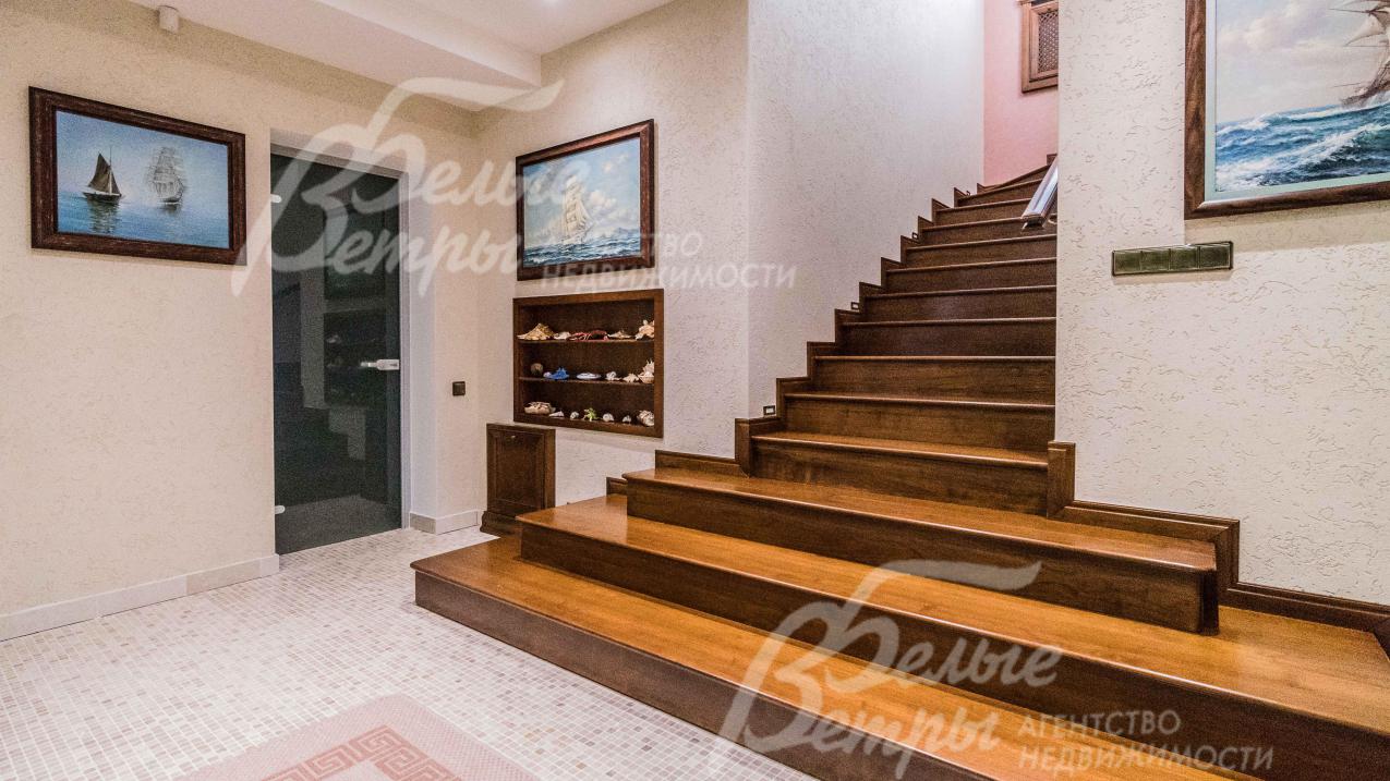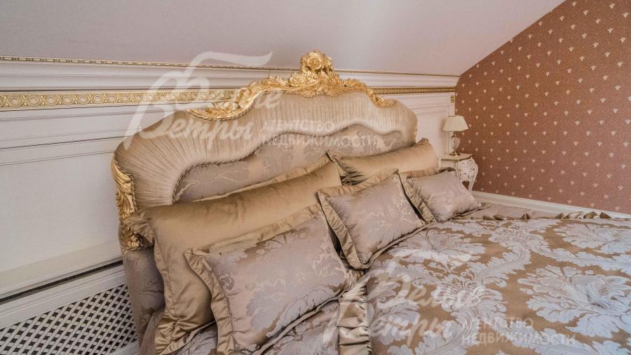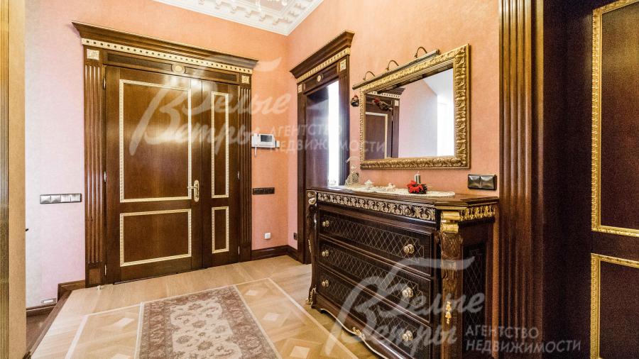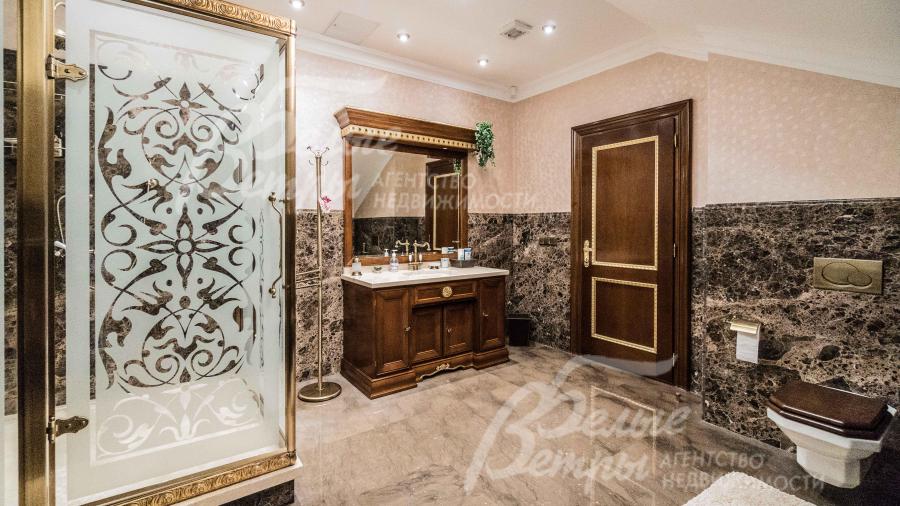 Описание внутренней отделки: Отделка в классическом стиле. В отделке использованы дорогие натуральные материалы. Прихожая, гостиная, спальни, кинозал, кабинет выполнены на заказ из массива дерева с позолотой итальянской фабрикой. На полу паркет, массивная доска, на стенах -английские обои, санузлы отделаны мрамором - Emperador Dark, красный лангедокский мрамор. Потолочные розетки и карнизы выполнены из гипсовой лепнины. Бассейн - мозаика, в хаммаме на стенах и полу - оникс. 2 лестницы монолитные, отделаны деревом с подсветкой. Подоконники мраморные Crema-Marfil; Камин отделан мрамором Emperador Dark и Crema-Marfil;