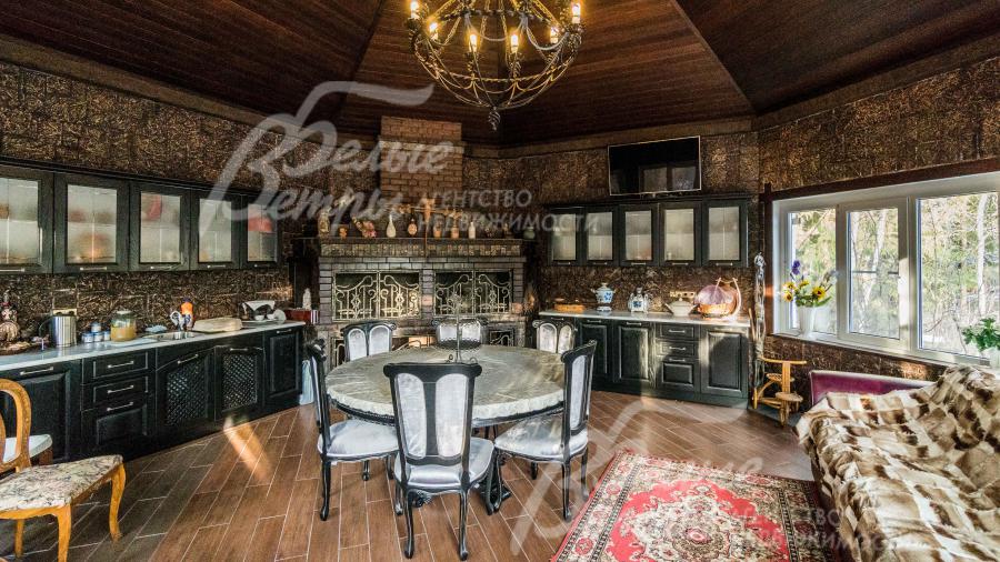 Уникальная Усадьба, общая площадь строений 1230 кв.м на лесном участке 116 соток. Все строения выполнены под ключ и меблированы. В отделке использованы высококачественные натуральные материалы. Мебель выполнена на заказ. Есть все, что нужно для проживания и отдыха! Просторная гостиная, зимний сад, оборудованная столовая-барбекю, Spa-зона с бассейном, сауной и хаммамом, кинозал, тренажерный зал, кабинет. На участке есть отдельностоящая баня на дровах 210 кв.м с уличным подогреваемым бассейном и 3-мя спальнями, теплая беседка барбекю, беседка рыбака, гараж на 3 авто и квартирой для персонала. Великолепный лесной участок с профессиональным ландшафтным дизайном, где устроены 2 пруда, в один из которых запущены карпы. В поселке большая внутренняя инфраструктура (торгово-развлекательный центр, бассейн, фитнес, детский сад, начальная школа, кинотеатр, ресторан, озеро).