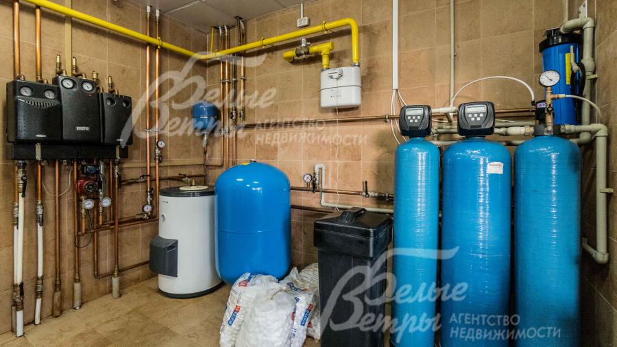 Инженерное обеспечение: К дому подключены все центральные коммуникации (газ, электричество, водопровод, канализация). в доме центральное кондиционирование. В каждом помещении панели с управлением климат контролем Mitsubishi Electric. Котельная в гараже: установлено 2 газовых котла DeDirtrich, многоступенчатая очистка воды, большой электро-генератор на 39 кВт GESAN DPAS 35E. Обвязка котельной медными трубами. Электрика Merten. В доме установлена сигнализация.