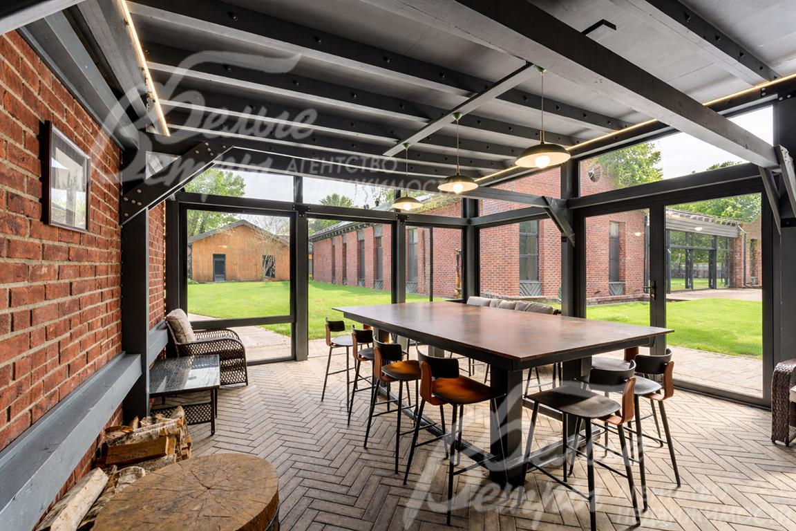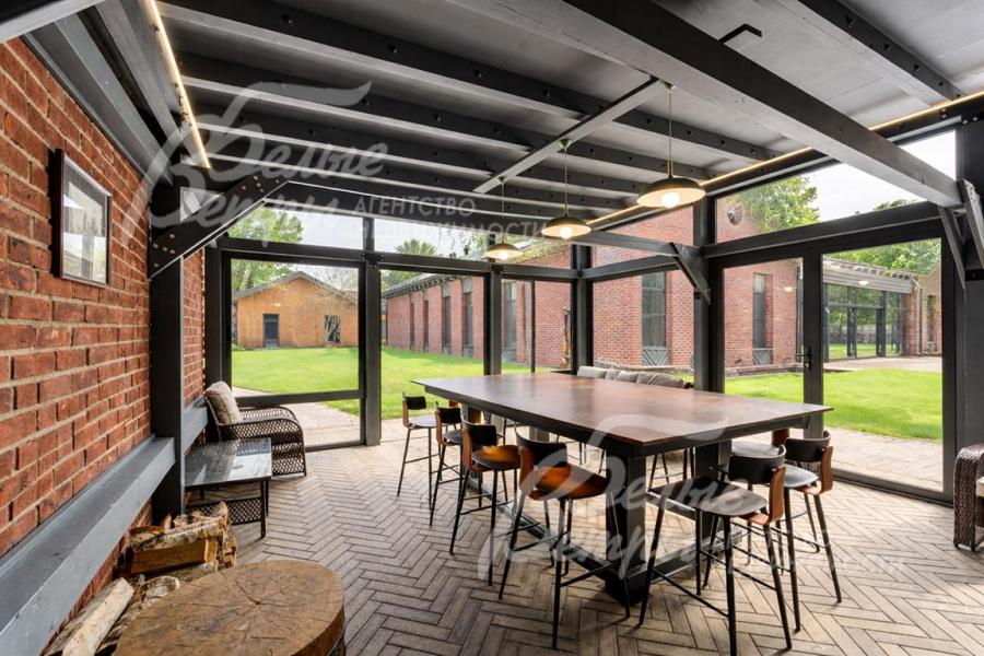 Опции: квартира для персонала; терраса; машиномест крытых: 6, в т.ч. в теплом гараже: 2; кострище (уличный очаг), клумбы с декоративными деревьями, зона очага.