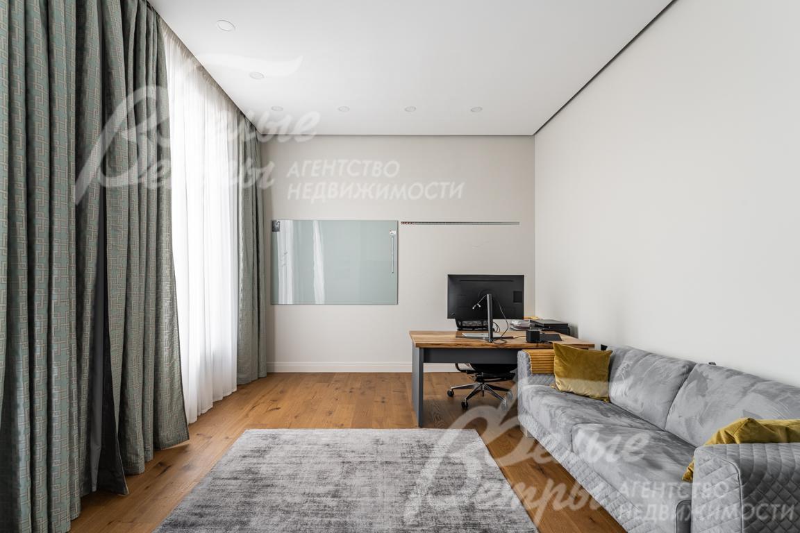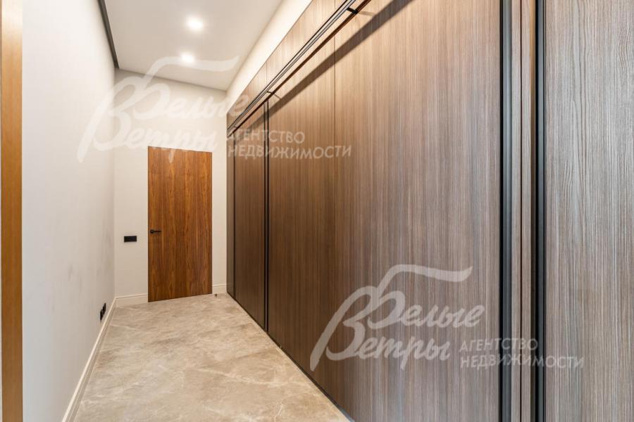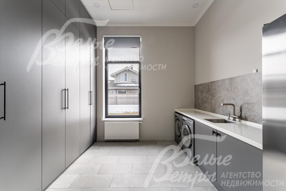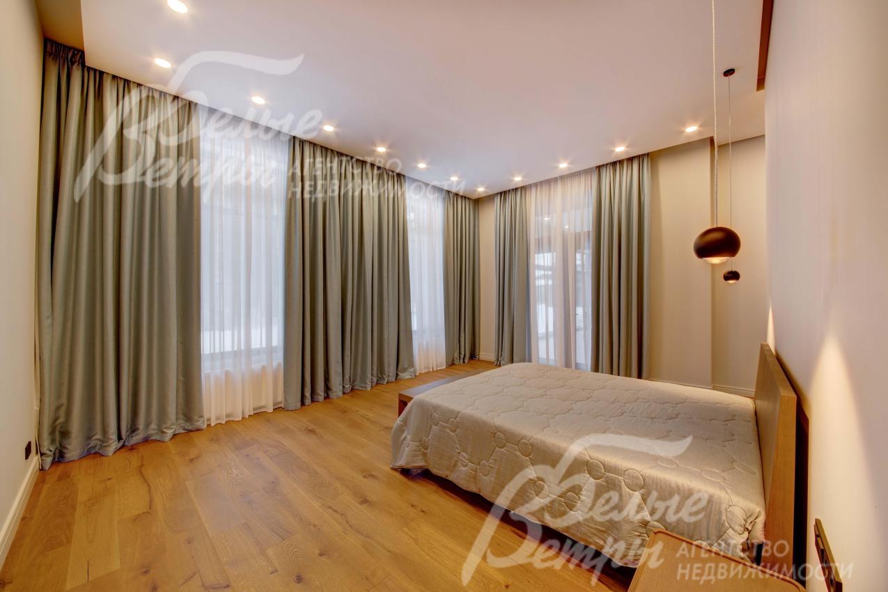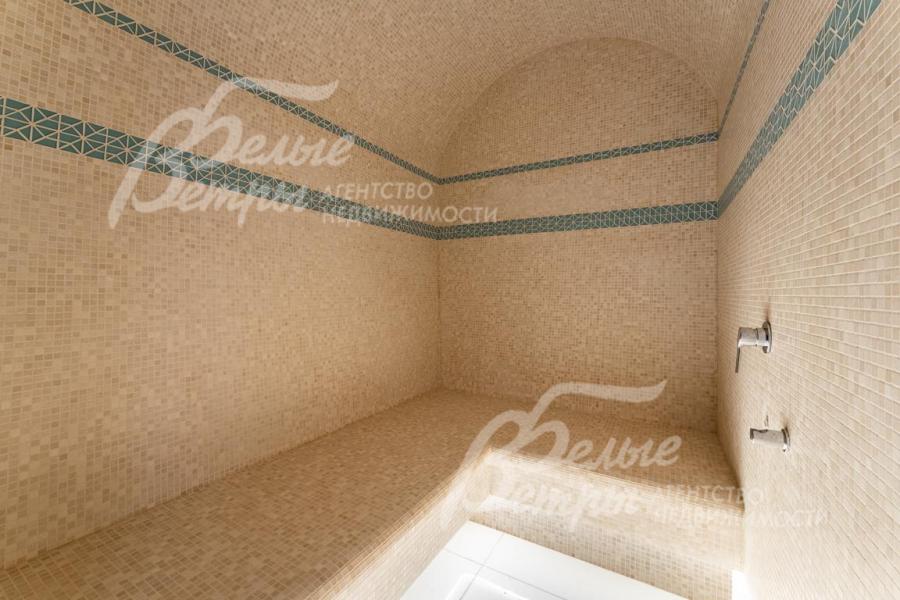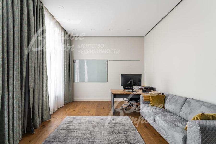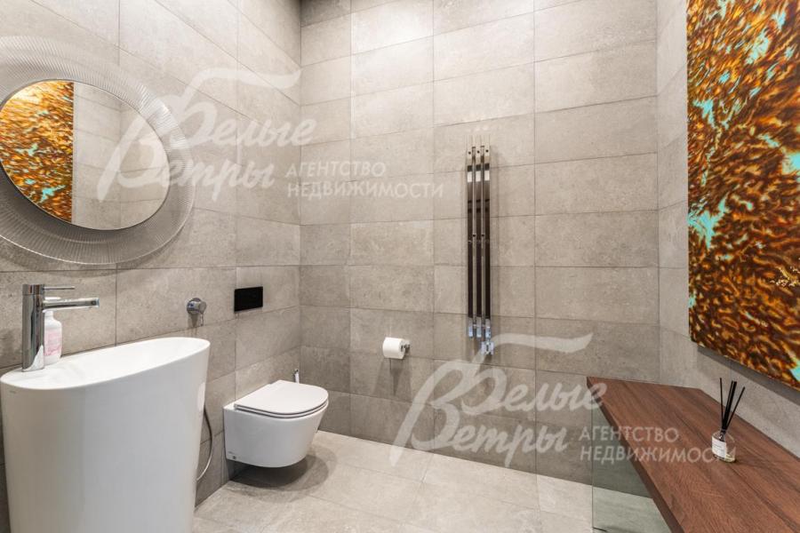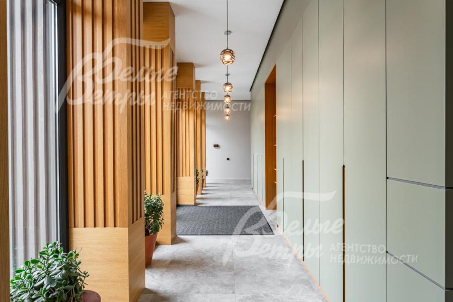 Описание внутренней отделки: индивидуальный авторский проект. Выполнена дизайнерская отделка: основные элементы отделки внутренних стен - покраска или декоративная штукатурка, в ванных комнатах - плитка из Италии, также Kerama-Marazzi. На полу керамогранит с водяным подогревом (Италия), массивная доска из американского ореха и ясеня. Многоуровневые потолки. Установлена сантехника бренда Jacob Delafon (Франция). Разводка коммуникаций по дому под ключ, розетки и выключатели фирмы Jung. Межкомнатные двери скрытого монтажа (без наличников, сливающиеся со стеной) высотой 240 см, к каждой двери итальянские ручки. Подоконники из искусственного камня (под белый мрамор).