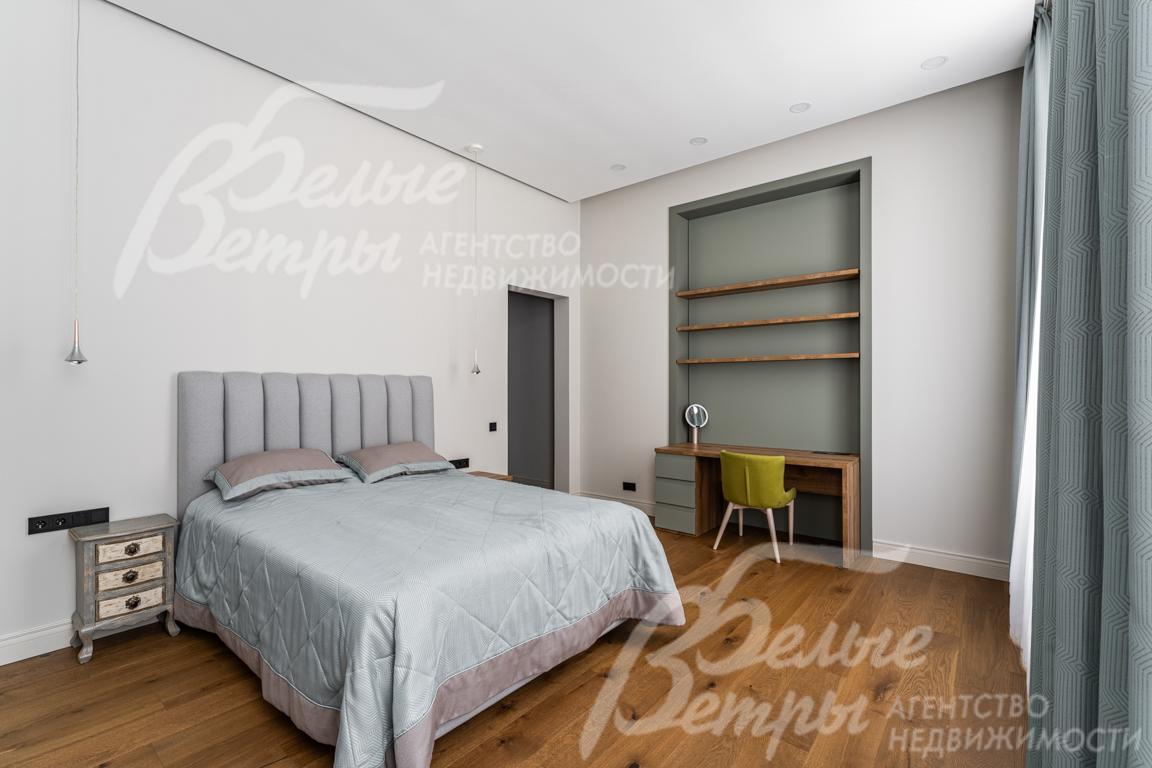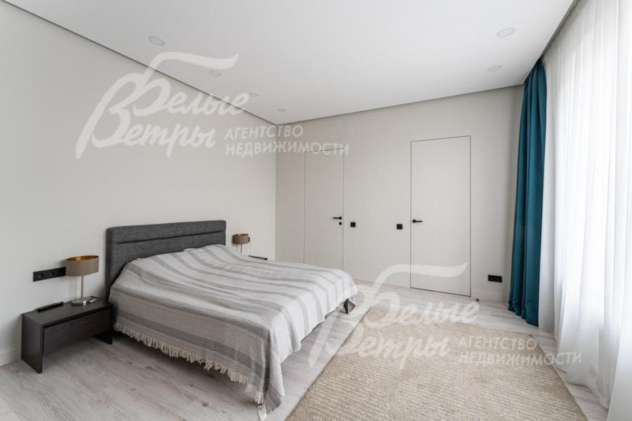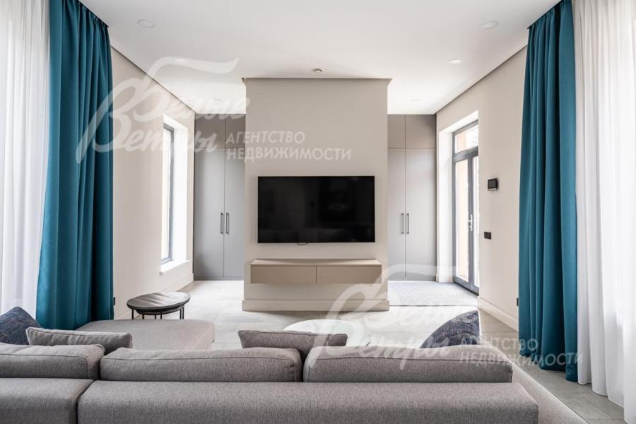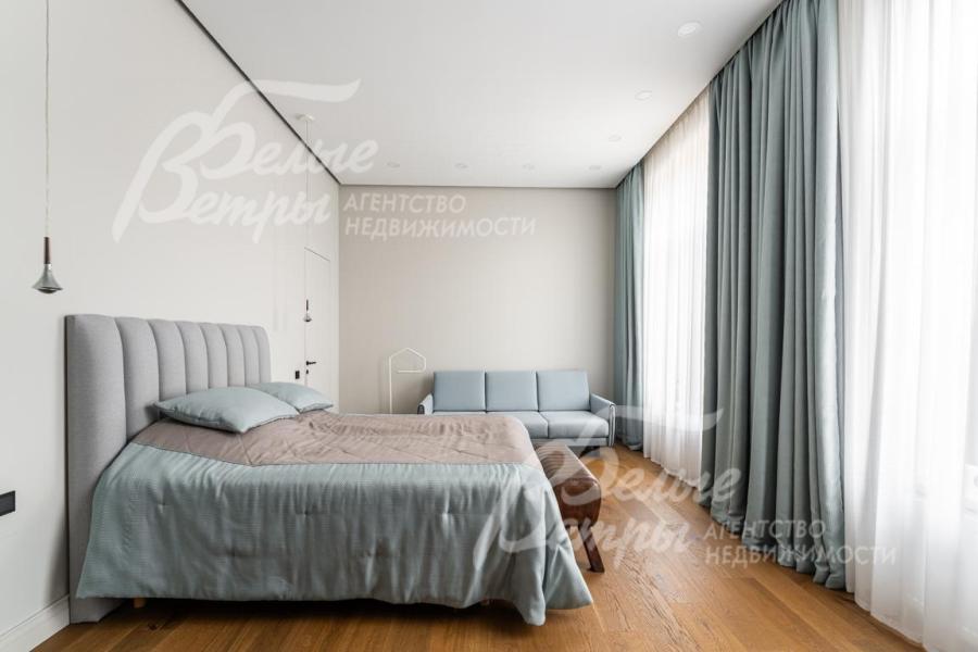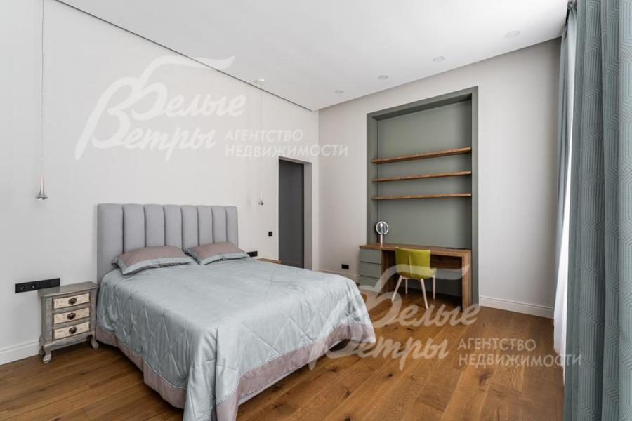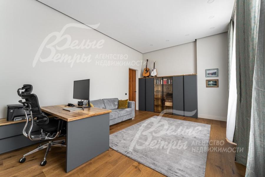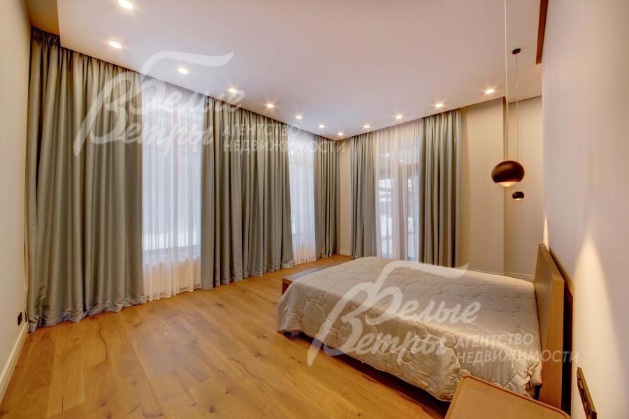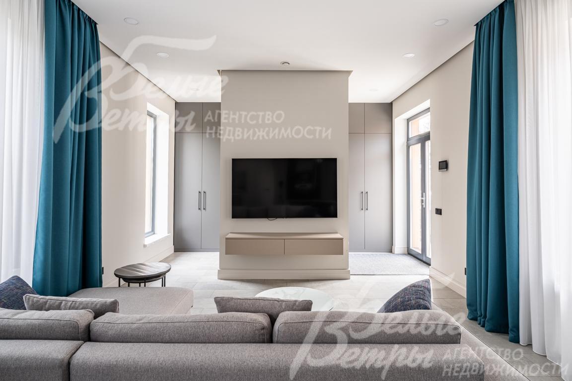 Описание внутренней отделки: индивидуальный авторский проект. Выполнена дизайнерская отделка: основные элементы отделки внутренних стен - покраска или декоративная штукатурка, в ванных комнатах - плитка из Италии, также Kerama-Marazzi. На полу керамогранит с водяным подогревом (Италия), массивная доска из американского ореха и ясеня. Многоуровневые потолки. Установлена сантехника бренда Jacob Delafon (Франция). Разводка коммуникаций по дому под ключ, розетки и выключатели фирмы Jung. Межкомнатные двери скрытого монтажа (без наличников, сливающиеся со стеной) высотой 240 см, к каждой двери итальянские ручки. Подоконники из искусственного камня (под белый мрамор).