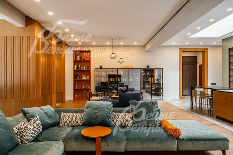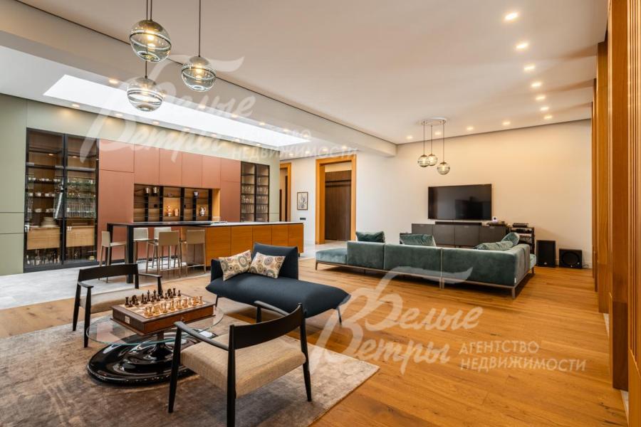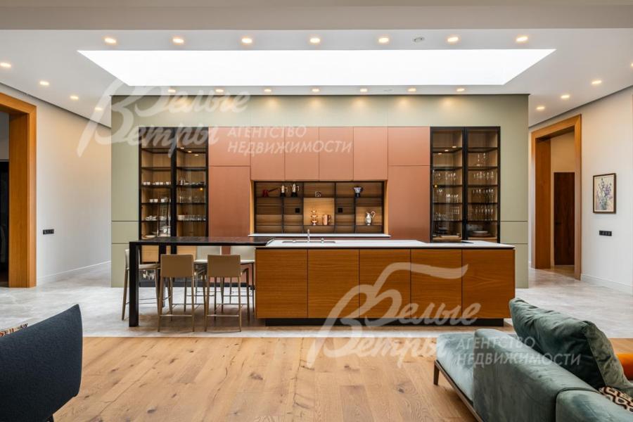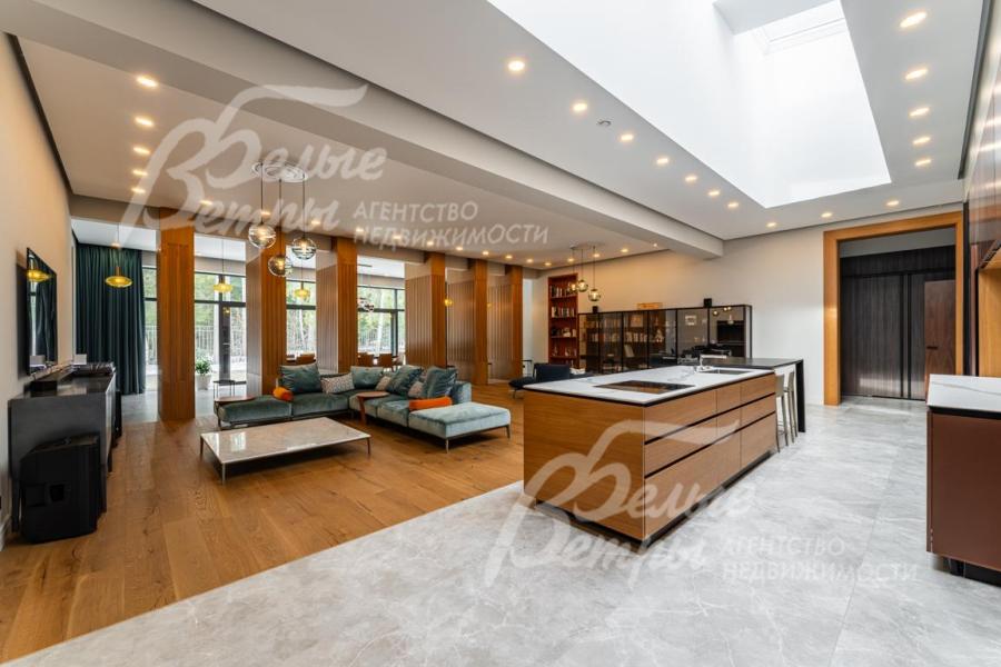 Редкое предложение на рынке элитного загородного жилья - одноэтажный дом премиум уровня! Выполнен под ключ, по авторскому проекту, с дизайнерской отделкой и мебелью от брендовых итальянских производителей. Расположен на прилесном участке, с роскошным ландшафтом, в обжитом коттеджном поселке премиум класса, с собственным большим озером и обустроенным бульваром. Дом отличает проработанный до идеала функционал: высокие потолки и остекление от пола; общее перетекающее из зоны в зону пространство (прихожая-кухня-столовая-гостиная-зимний сад) около 200 кв.м, отделенные от общественной и друг от друга приватные зоны - главной спальни и остальных спален, в каждой из них собственные санузлы. Есть дополнительная, рабочая, кухня и всесезонная терраса 70 кв.м. Также на участке - дом для гостей (персонала) площадью 137 кв.м с гаражом на 2 авто и квартирой с отделкой и меблировкой такого же уровня как и основной дом. ИЖС. Московская прописка.