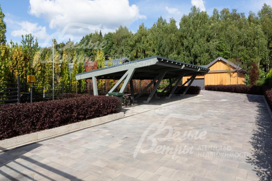 Благоустройство участка: ландшафтный дизайн по индивидуальному проекту: участок разделён на несколько зон: гостевая зона с крытой парковкой на 4 авто, зона для костра со скамейками вокруг и садом из декоративных растений. Высажены деревья - туи, сосны, пихты, самшиты, множество кустарников, проложены прогулочные дорожки, организовано освещение, клумбы (отлиты из бетона). Газон, организован автоматический полив и отдельная скважина для полива (есть накопительный бак 2000 куб.м).