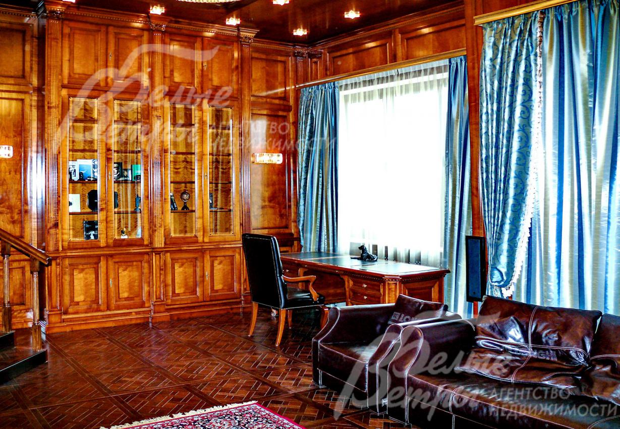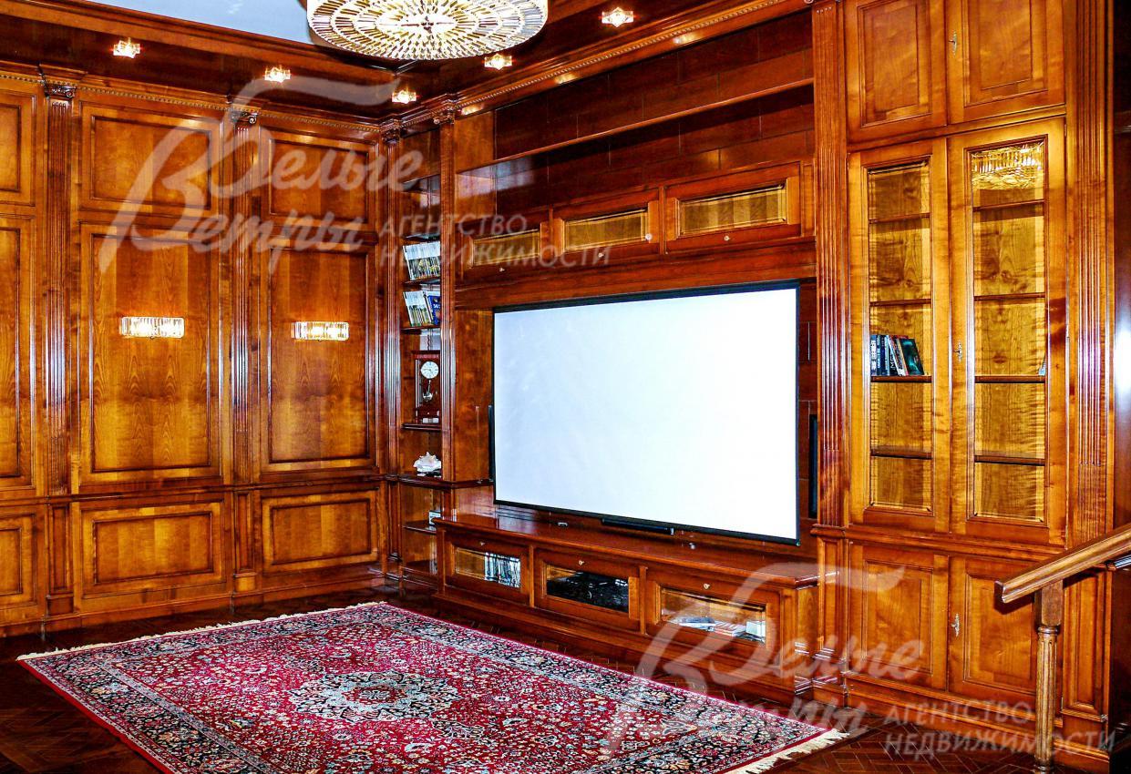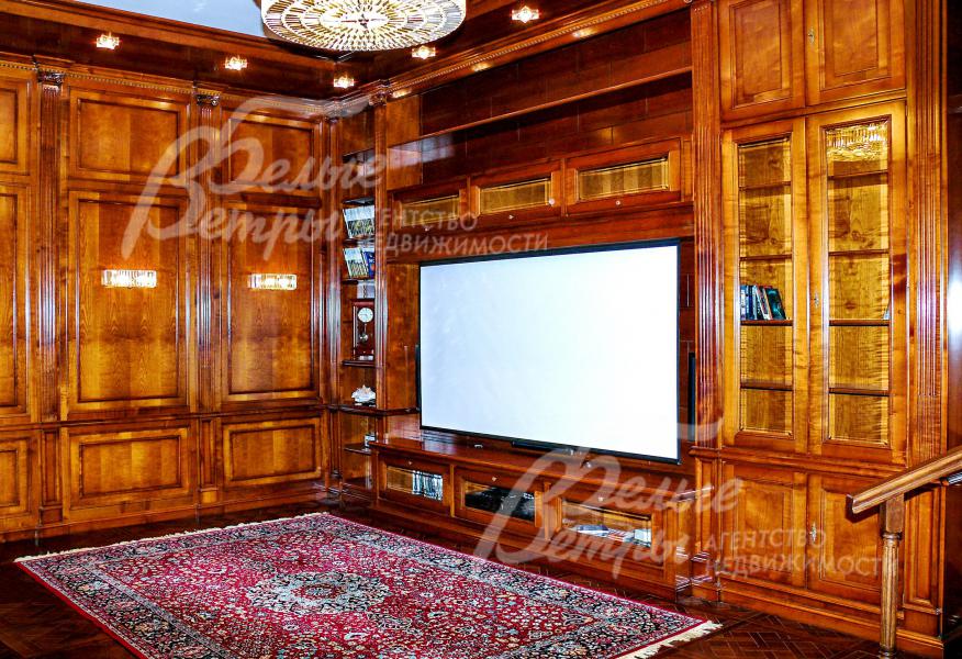 Интерьер класса люкс выполнен по авторскому дизайну с использованием высококачественных привезенных из Италии материалов, аксессуаров и мебели. Внутри дома прослеживается итальянский мотив, который сочетается с элементами индустриального стиля. Бассейн (с противотоком), парная из кедра, купель и хамам. Гостиная со «вторым светом», с круглым камином с эффектом костра. Впечатляющий кинотеатр-кабинет, отделанный дубом и вишней, с проектором, механизированным экраном и и профессиональной звуковой системой. Отличная инженерия (мощный резервный генератор, дублирующие газовые котлы, центральная система вентиляции). Отдельностоящие гостевой дом, отделанный на хорошем уровне, и крытая терраса-барбекю. Дом расположен в обжитом коттеджном поселке Графские Пруды, застроенном в едином стиле, с развитой инфраструктурой, со своим озером, в окружении леса. Видео по дому в Графских Прудах