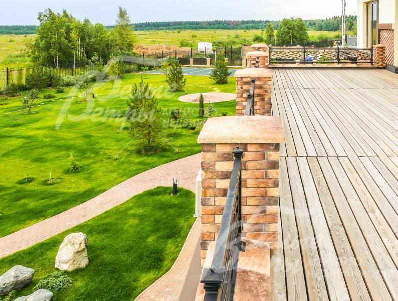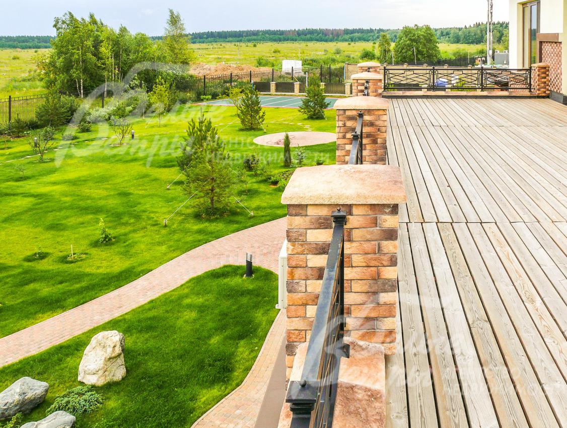 Благоустройство участка: участок с лесными хвойными деревьями, с элементами ландшафтного дизайна и газоном. На участке выполнен ландшафтный дизайн: вдоль забора со стороны улицы посажено более 100 туй, на участке высажено более 12 молодых сосен, 5 елей, 6 взрослых берез, большое количество декоративных кустарников. Брусчаткой вымощены дорожки и парковка, везде присутствует газон. Сделан небольшой сад камней и волейбольная площадка. Вокруг дома и по участку выполнен дренаж. На участке сделана система авто полива Orbit.