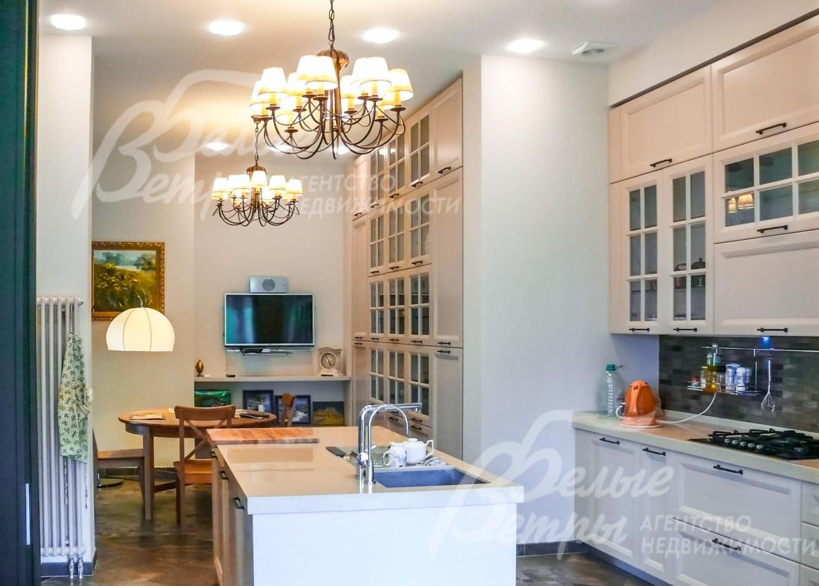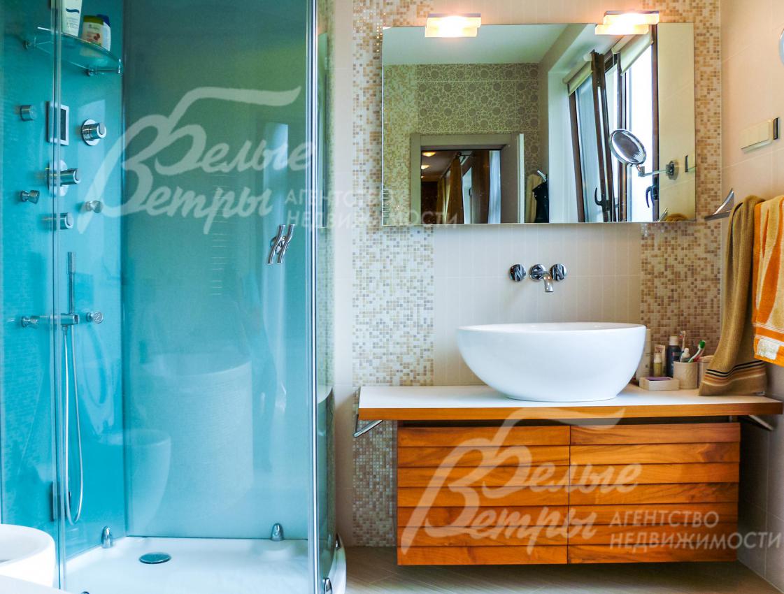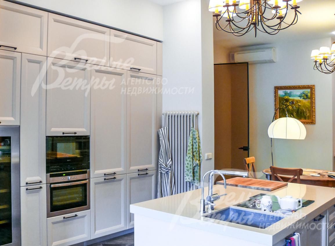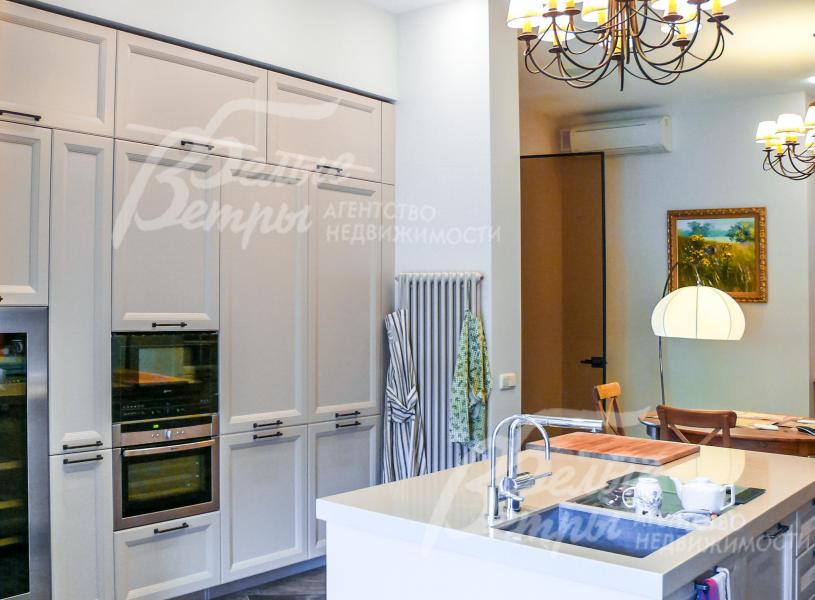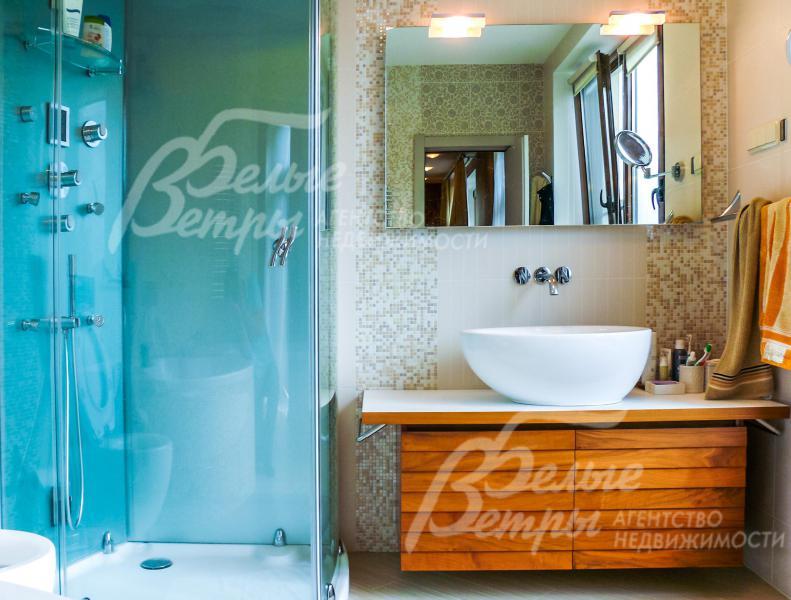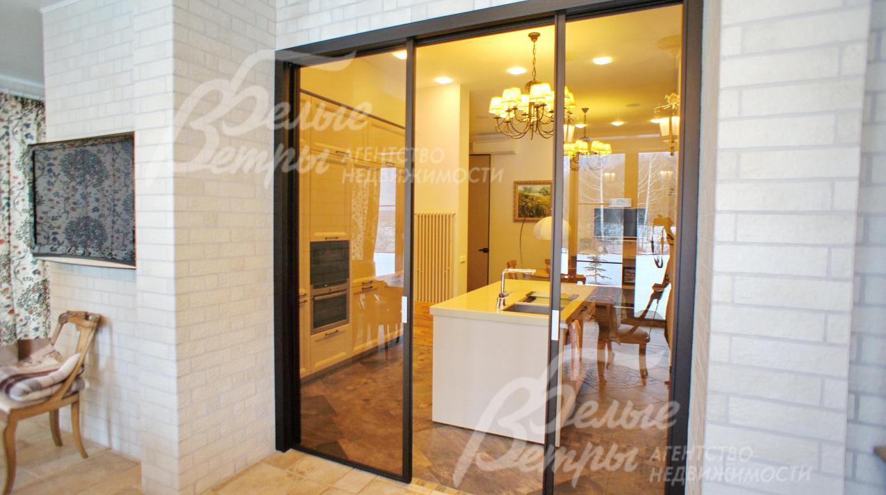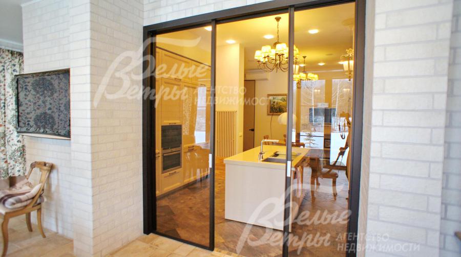 Мебель, оборудование: Двери - массив дерева на заказ, на кухне и в СПА зоне установлены стеклянные двери. Кухня на заказ из Италии фасады деревянные столешница искусственный камень, имеет "остров" и большое количество посудных шкафов. Вся встроенная техника NEFF. Подоконники мраморные. Камин расположен так, что огонь видно с любой точки гостиной и даже с обеденной зоны на кухне.