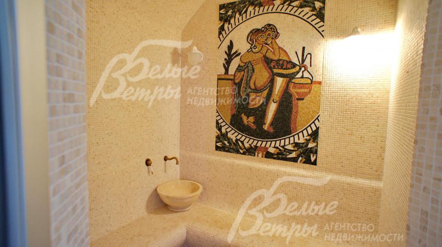 В хамаме на стене мраморное пано из Италии.