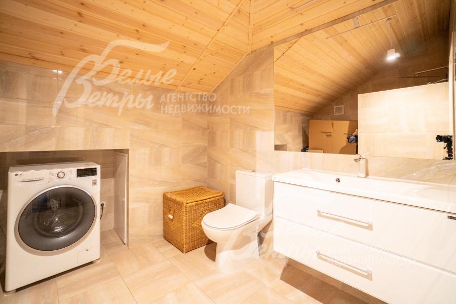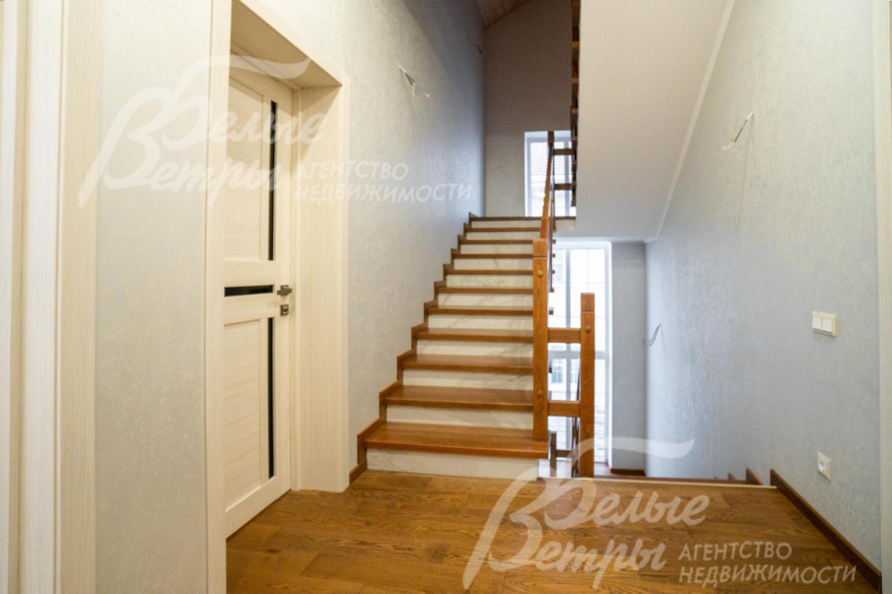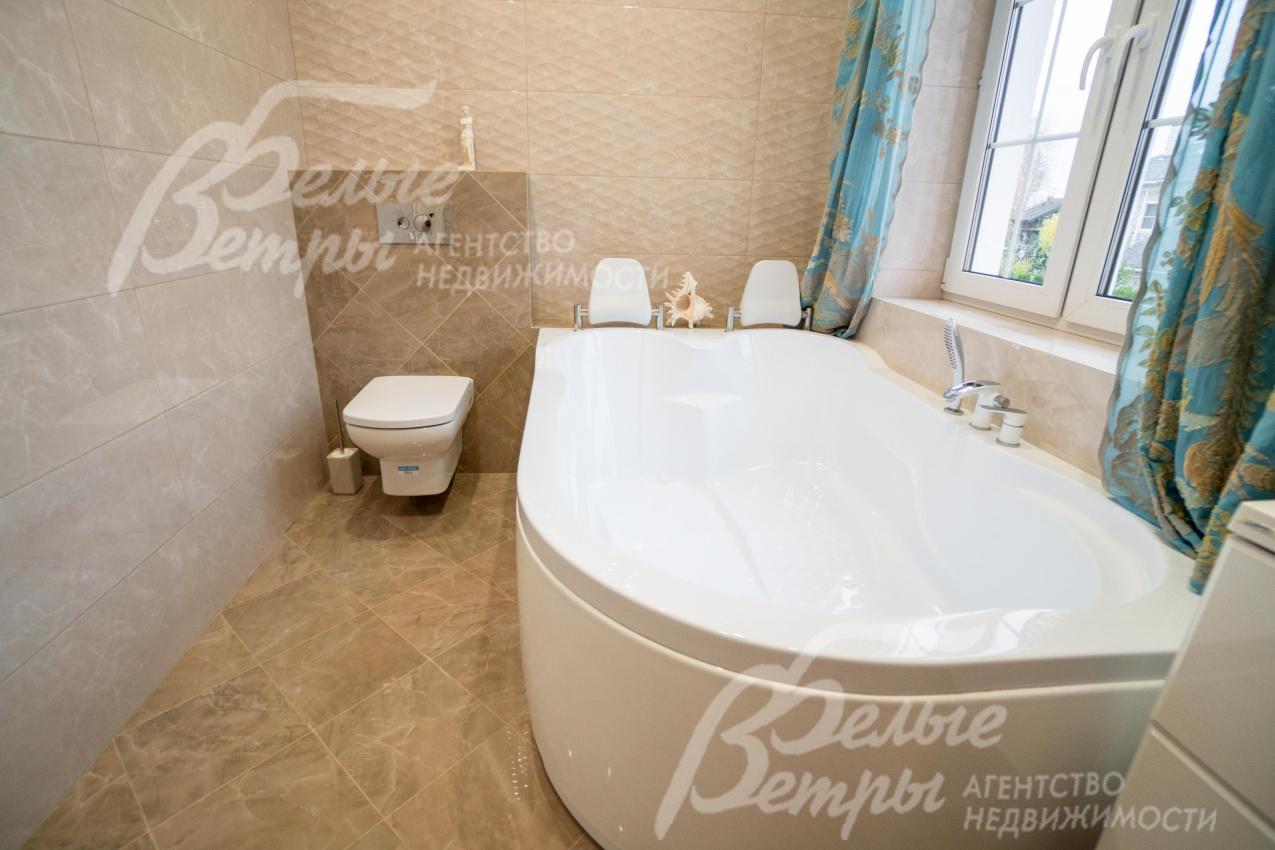 Описание внутренней отделки: выполнена отделка в современном стиле, в светлых тонах. На стенах декоративная штукатурка (шелк). На полу крупноформатный керамогранит с водяным подогревом (все санузлы, прихожая, холл, зона кухни и зона гостиной, санузлы на 2-м этаже и весь 3-й этаж), в жилых комнатах - паркетная доска (дубовая). Лестница ж/б монолитная, ступени - массив дуба, поручни деревянные (дуб). Потолки натяжные (французские) - на 1-ом этаже, ГКЛ - на 2-м этаже. Вся сантехника европейских брендов GROHE, Vitra. Все коммуникации разведены. Под керамогранитом водяной подогрев пола, на 2-ом этаже (где нет плитки на полу) установлены биметаллические радиаторы. Электрика - Schneider Electric. Во двор выведен силовой кабель для обеспечения электричеством дополнительных построек. В стену Гостиной встроена труба для камина. Межкомнатные двери стандартные современные, покрытие - 3D-ламинация. Подоконники дубовые. Проведены коммуникации для камина. Выведен силовой кабель для обеспечения электричеством дополнительных построек.