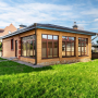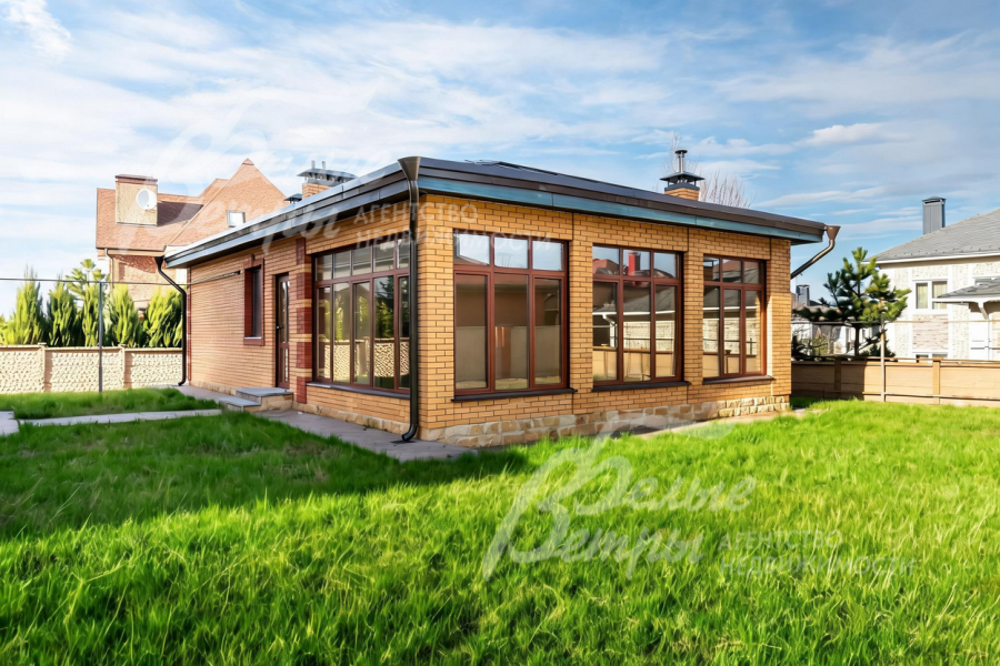 Дополнительные строения: одноэтажный банный комплекс 110 кв.м, построенный под ключ из кирпича в стиле основного дома с тёплой отапливаемой верандой и подготовкой под камин/ барбекю. Включает: прихожую 3 кв.м, зал с камином и панорамным остеклением 28 кв.м, парную 7 кв.м, хамам 7 кв.м, комнату отдыха 18 кв.м, санузел 3 кв.м, санузел 3 кв.м, котельную 6 кв.м