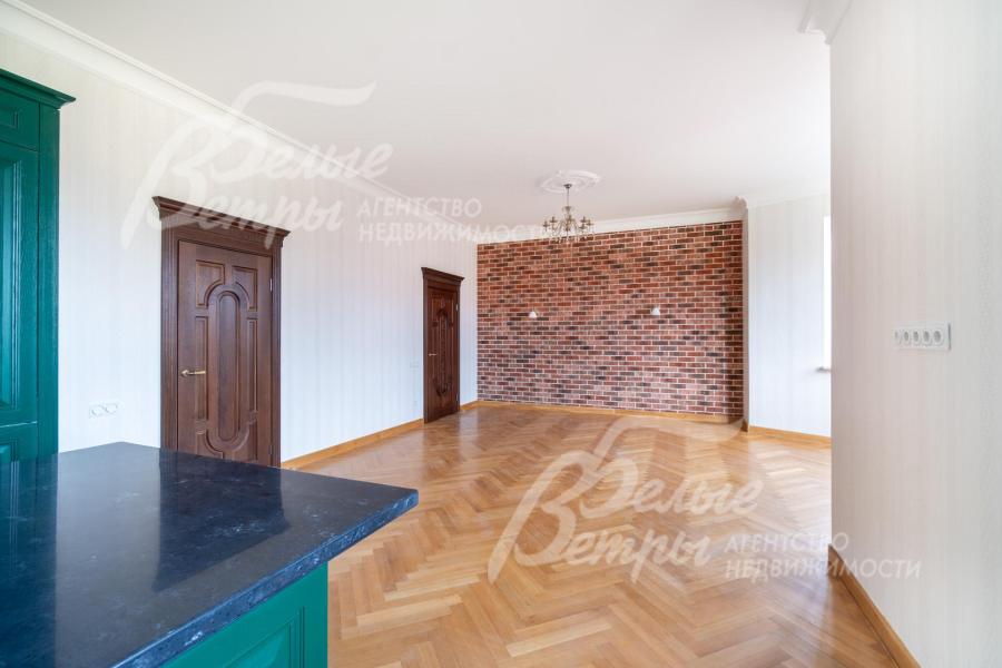 Мебель, оборудование: на кухне - гарнитур из массива дерева «Мария» с островом, выполненный в классическом стиле. Столешница изготовлена из акрилового камня. Кухня оснащена двумя встроенными холодильниками Liebherr, посудомоечной машиной Neff, духовкой, микроволновой печью и плитой Gorenje