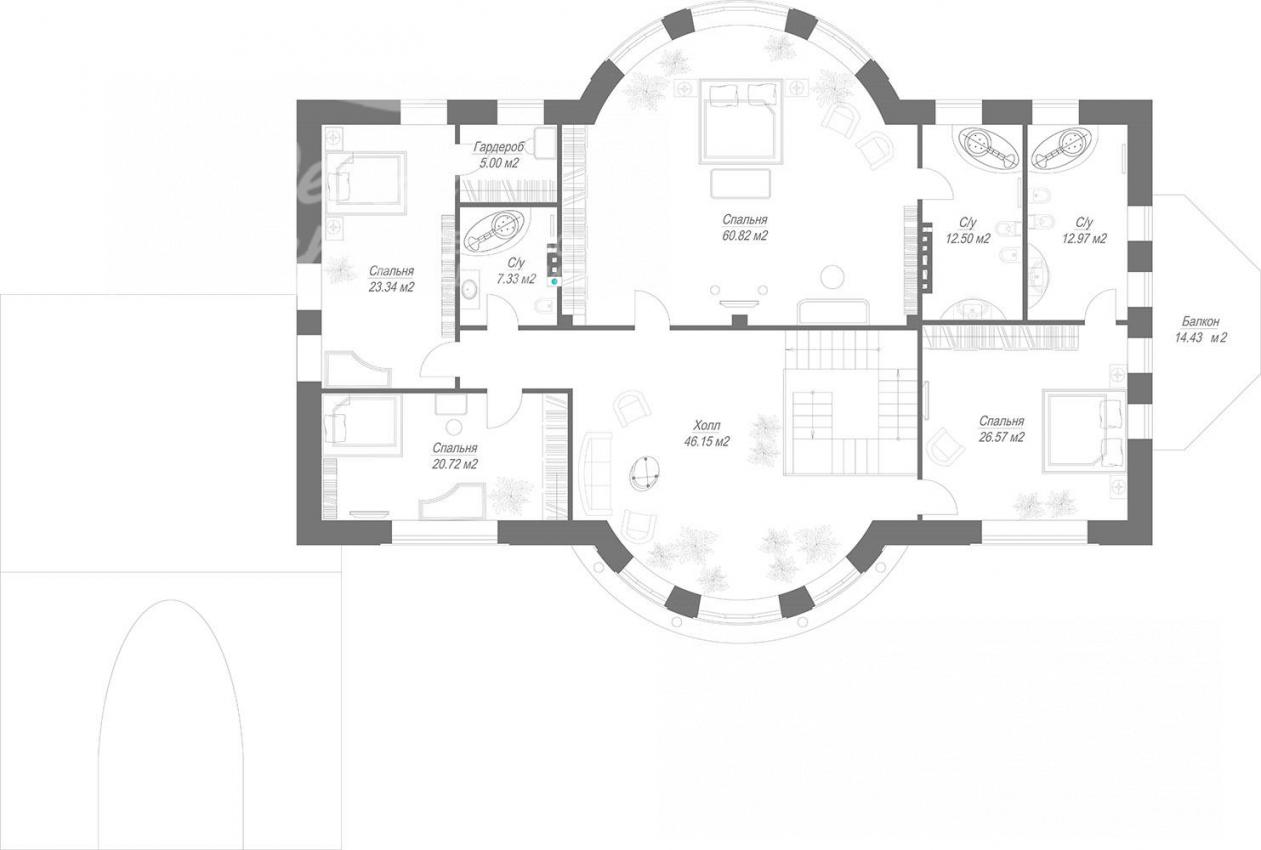 Спален: 8. С/узлов: 8. Комнат всего: 14.