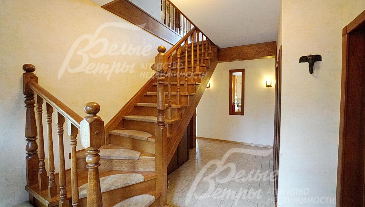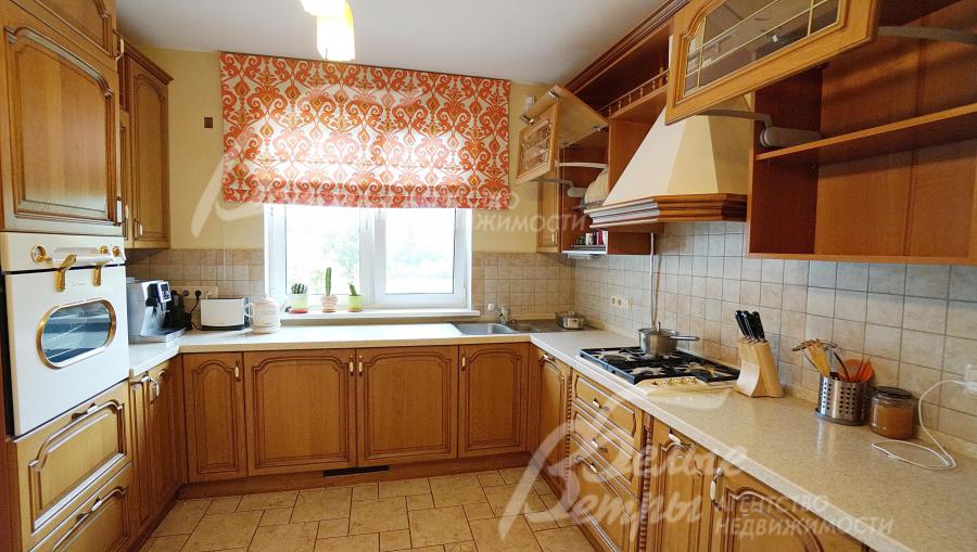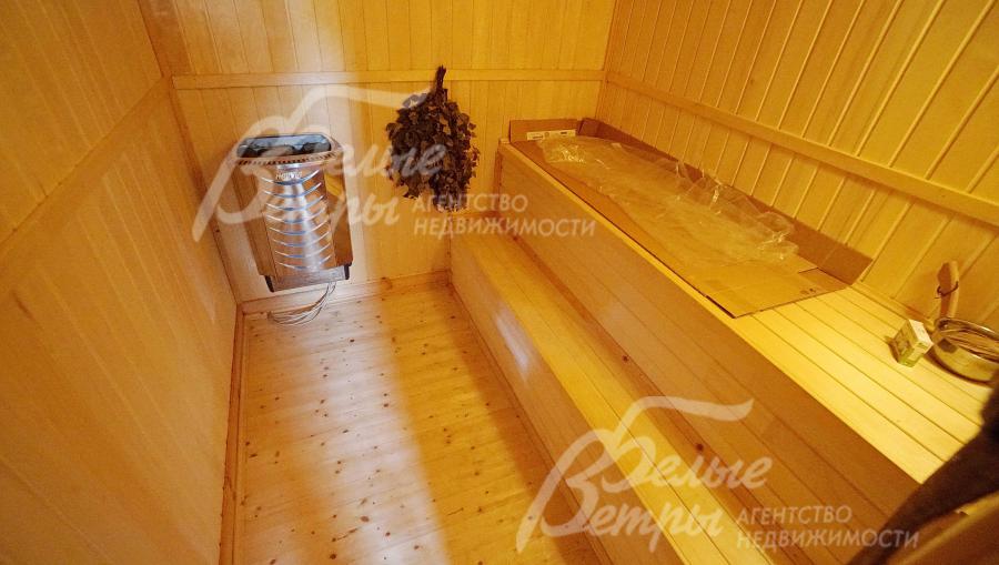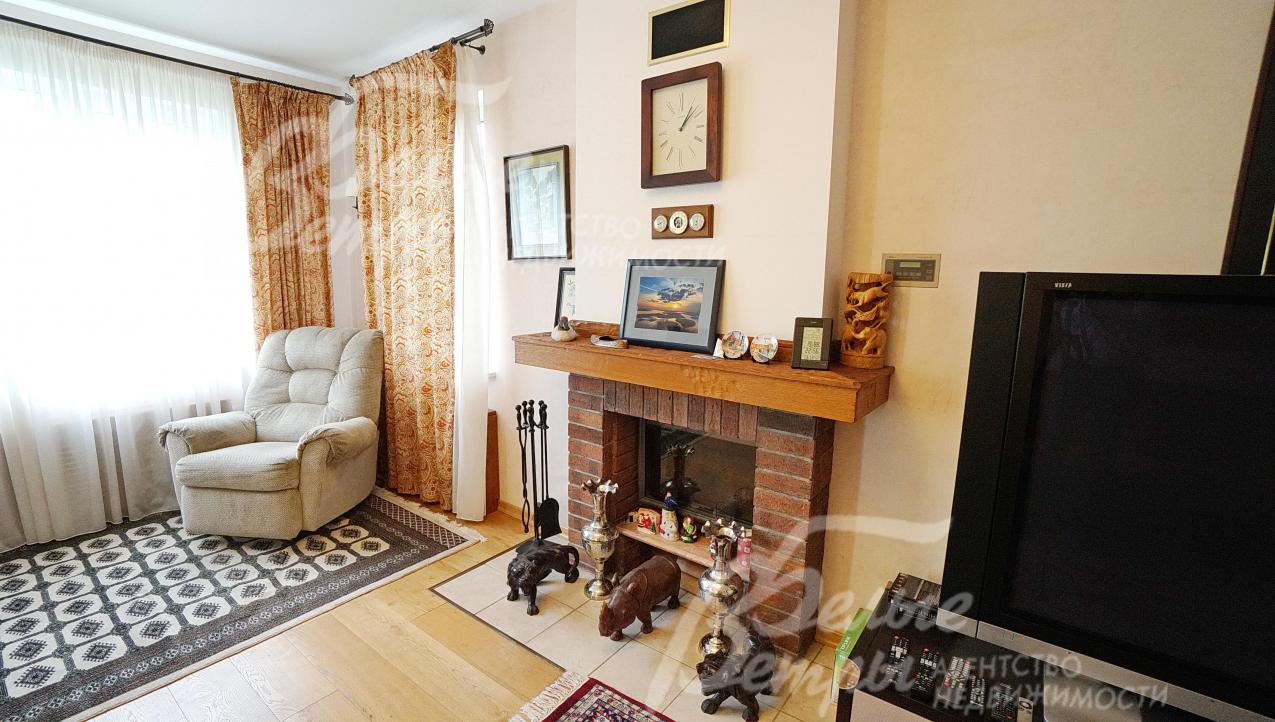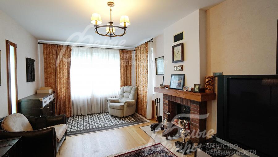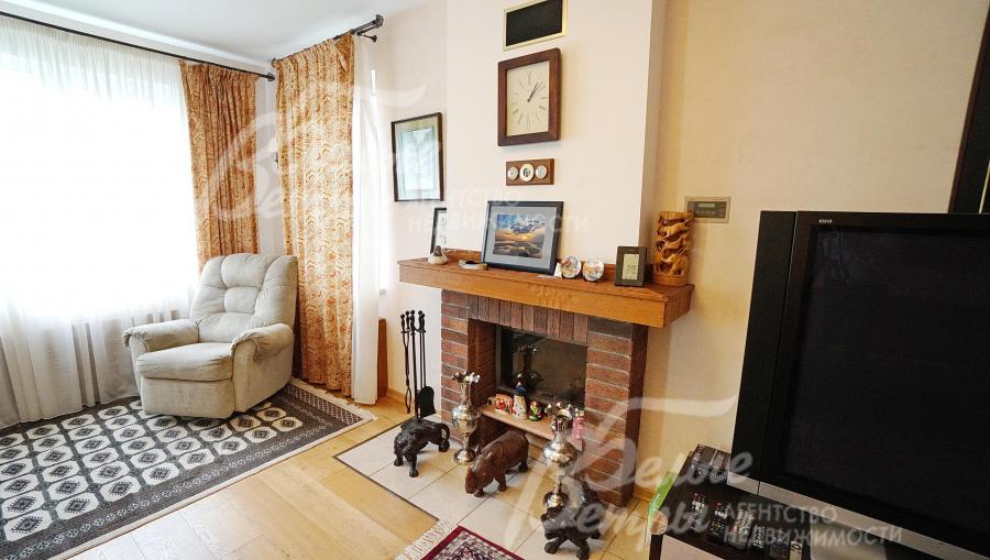Описание внутренней отделки: на стенах в основном обои; в отделке полов использованы ламинат, паркет, плитка с теплыми полами; потолки выполнены из ГКЛ с лепными элементами; лестница из массива дуба; установлена импортная сантехника, стальные радиаторы Kermi, коммуникации разведены; двери шпонированные из массива дуба