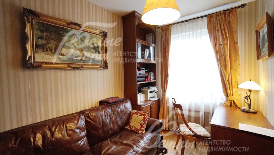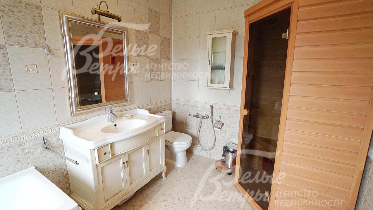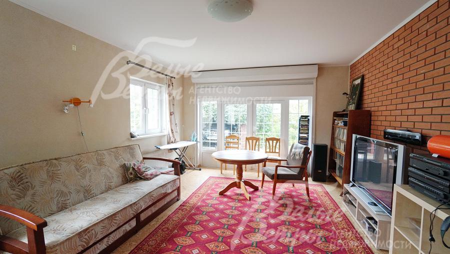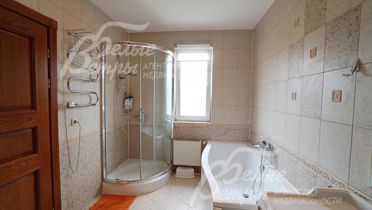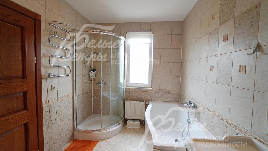 Описание внутренней отделки: на стенах в основном обои; в отделке полов использованы ламинат, паркет, плитка с теплыми полами; потолки выполнены из ГКЛ с лепными элементами; лестница из массива дуба; установлена импортная сантехника, стальные радиаторы Kermi, коммуникации разведены; двери шпонированные из массива дуба