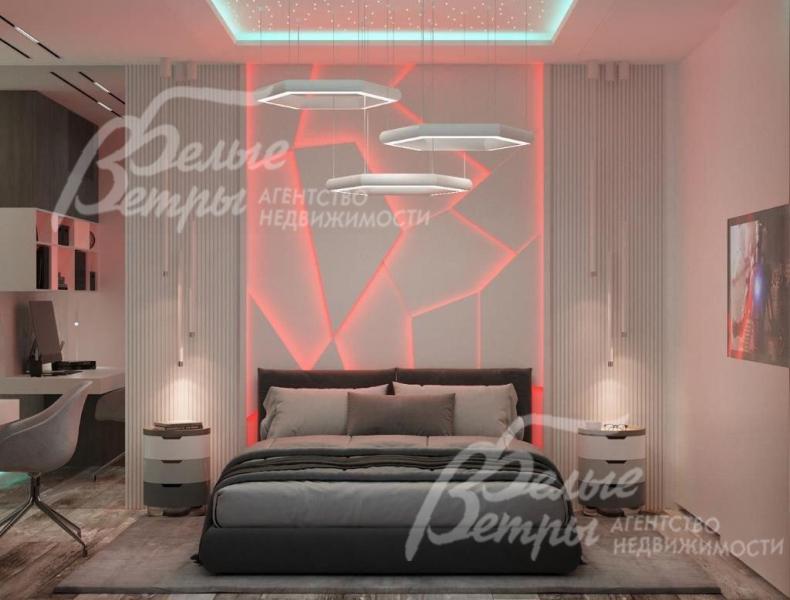 Мастер-спальня на втором этаже с раздвижным окном с выходом на балкон