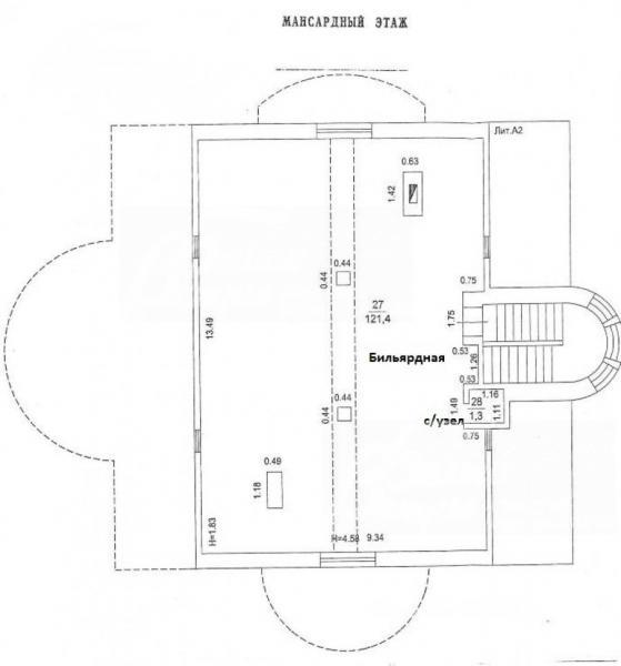3-ий этаж: комната свободного назначения 121 кв.м, с/узел