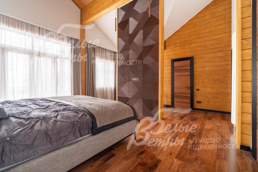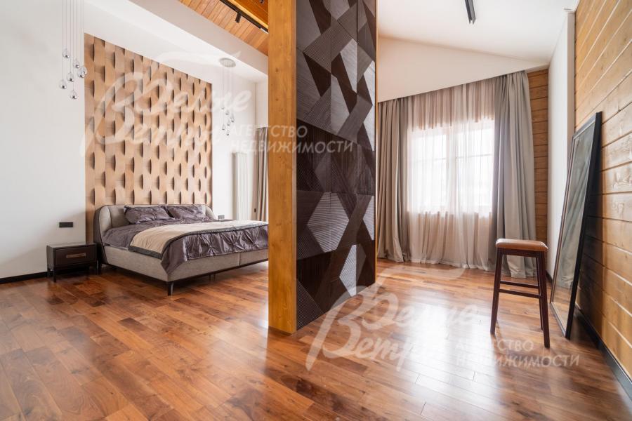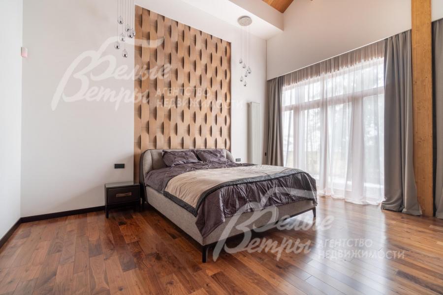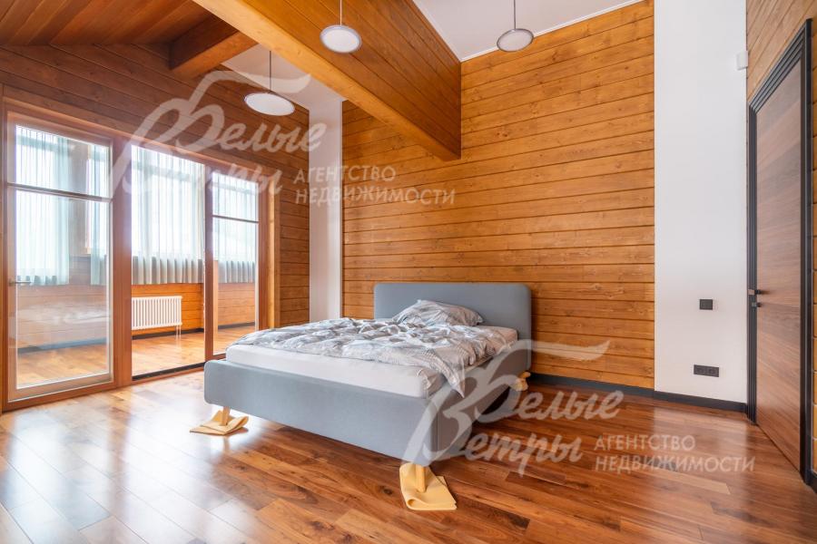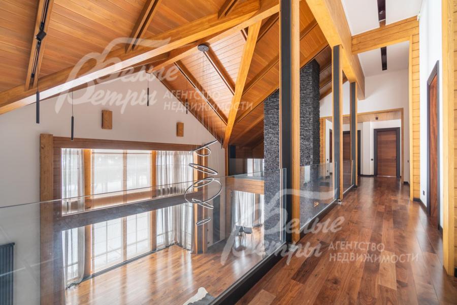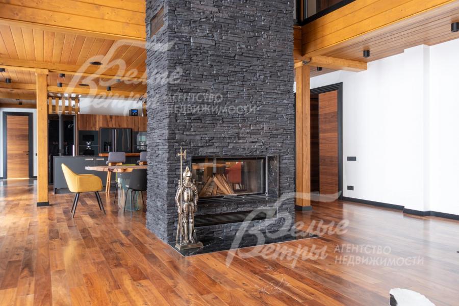 Новый меблированный дом из клеёного бруса, построенный в духе современной архитектуры. В едином ансамбле площадью более 1400 кв.м – главный дом, просторная спа‑зона с большим бассейном, гостевой дом, квартира для персонала и гараж. Дом окружают террасы площадью 370 кв.м. Интерьер оформлен в актуальных дизайнерских тенденциях отделочными материалами премиального уровня. Высокие потолки, большая площадь остекления и декоративные детали из ценных пород дерева создают атмосферу простора и уюта. В планировке: гостиная со вторым светом, кинозал с экраном 135″, летняя кухня с печью, спортзал, хамам, баня, купель на террасе. Дом стоит на большом лесном участке с сохранённым и облагороженным природным ландшафтом. Участок находится в живописном охраняемом коттеджном посёлке рядом с Москвой.