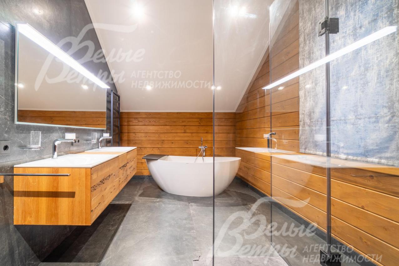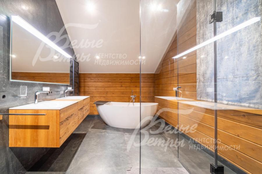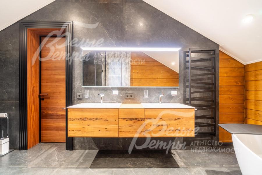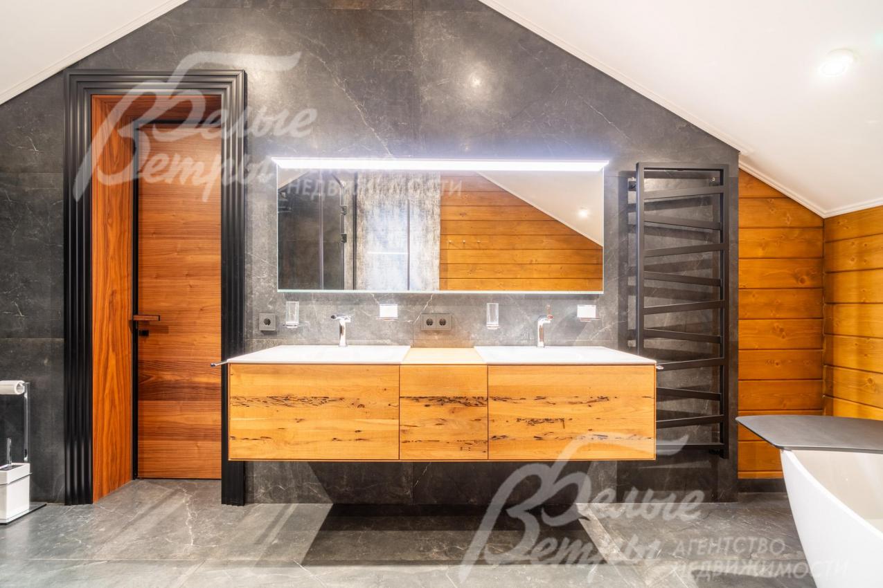 Новый меблированный дом из клеёного бруса, построенный в духе современной архитектуры. В едином ансамбле площадью более 1400 кв.м – главный дом, просторная спа‑зона с большим бассейном, гостевой дом, квартира для персонала и гараж. Дом окружают террасы площадью 370 кв.м. Интерьер оформлен в актуальных дизайнерских тенденциях отделочными материалами премиального уровня. Высокие потолки, большая площадь остекления и декоративные детали из ценных пород дерева создают атмосферу простора и уюта. В планировке: гостиная со вторым светом, кинозал с экраном 135″, летняя кухня с печью, спортзал, хамам, баня, купель на террасе. Дом стоит на большом лесном участке с сохранённым и облагороженным природным ландшафтом. Участок находится в живописном охраняемом коттеджном посёлке рядом с Москвой.