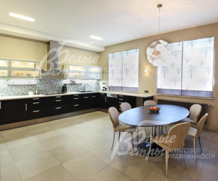 Мебель, оборудование: дом полностью укомплектован дизайнерской мебелью из каталогов, с выставок (производства Италии, Германии). Шикарный черный кухонный гарнитур с большой рабочей поверхностью. Встроенная бытовая техника немецкой марки "Miele" - варочная панель, духовой шкаф, микроволновая печь, посудомоечная машина, вытяжка, большой двухкамерный холодильник. Большой ТВ с домашним кинотеатром в гостиной, ТВ в кухне-столовой, в детской игровой. Стиральная машина "Miele". Шторы, тюль. Множество оригинальных светильников, люстр и дизайнерских зеркал.