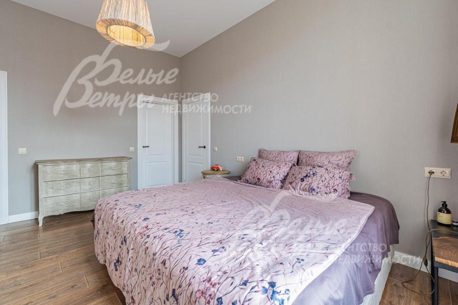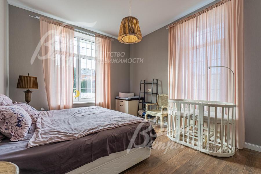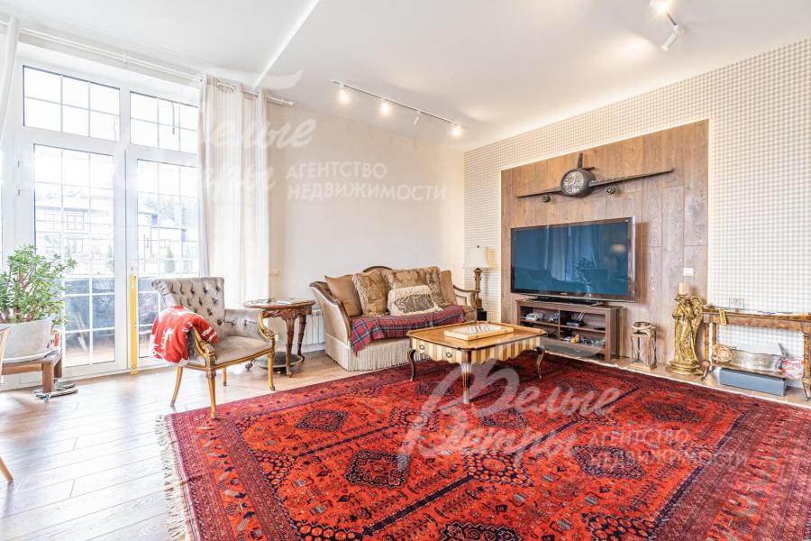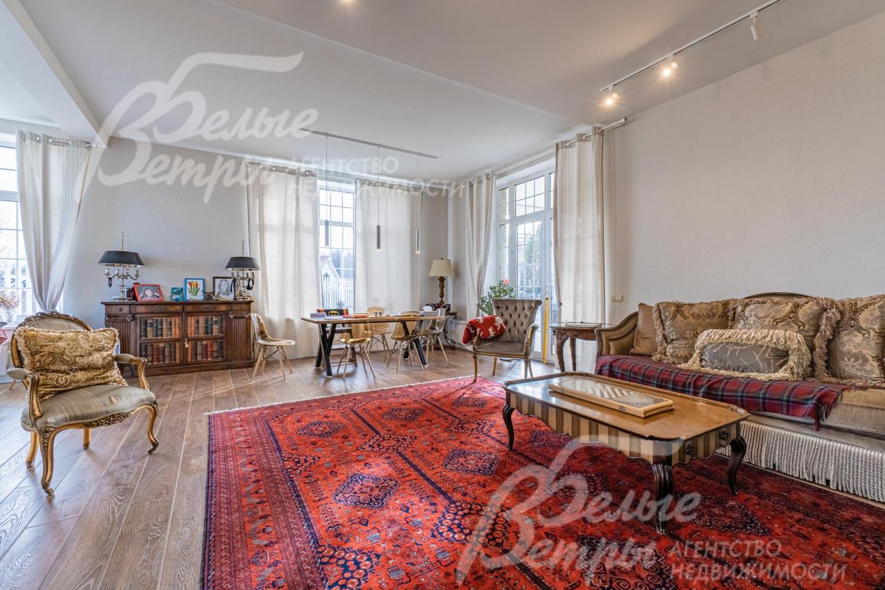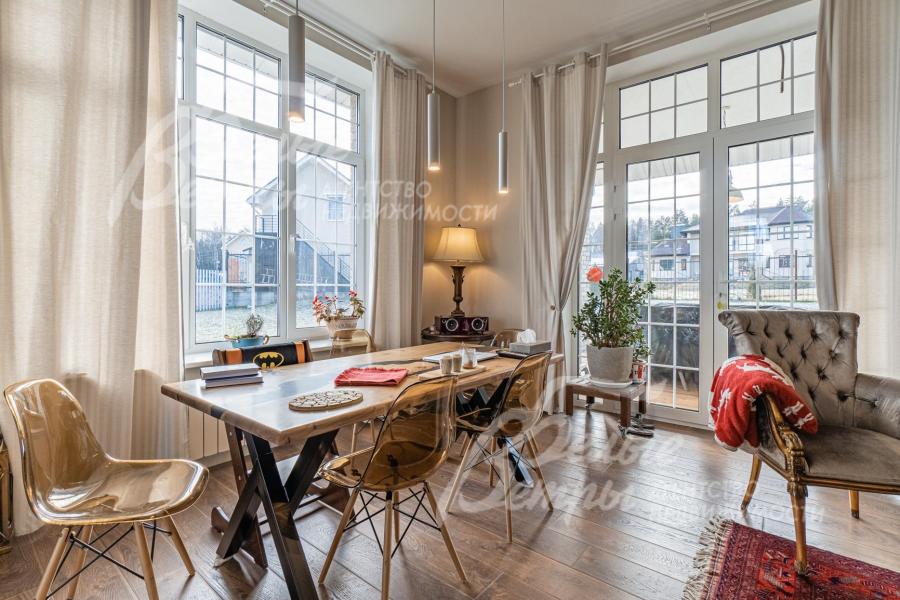 Описание внутренней отделки: выполнена современная классическая отделка. Поклеены обои в комнатах, в санузлах - плитка. Полы: плитка в прихожей, кухне и санузлах, в гостиной и комнатах - инженерная доска. Потолки из гипсокартона. Установлена качественная сантехника в санузлах. Теплые полы в гостиной, на кухне и в санузлах. Межкомнатные двери МДФ белые.