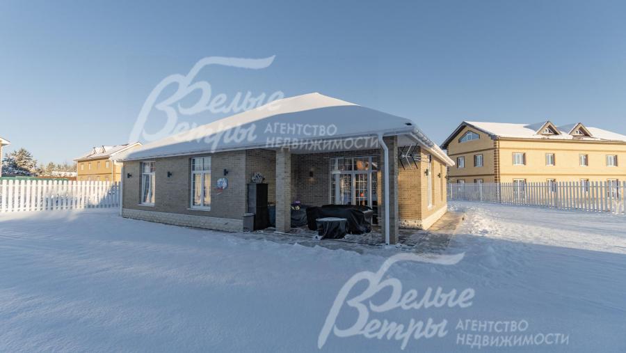 Современный одноэтажный дом с панорамным остеклением и функциональной планировкой, полностью готовый к проживанию, в обжитом коттеджном поселке с центральными коммуникациями. В доме выполнена стильная отделка в светлых тонах, сделаны тёплые полы. Дом расположен на просторном участке с ровным газоном и деревьями.