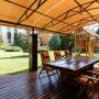 - крытая беседка 7,6 х 4,6 кв.м, 35 кв.м с мангальной зоне, монолитная, подготовленная под остекление, со столом на 10 персон, с дубовыми полами, подведенной водой и освещением;
