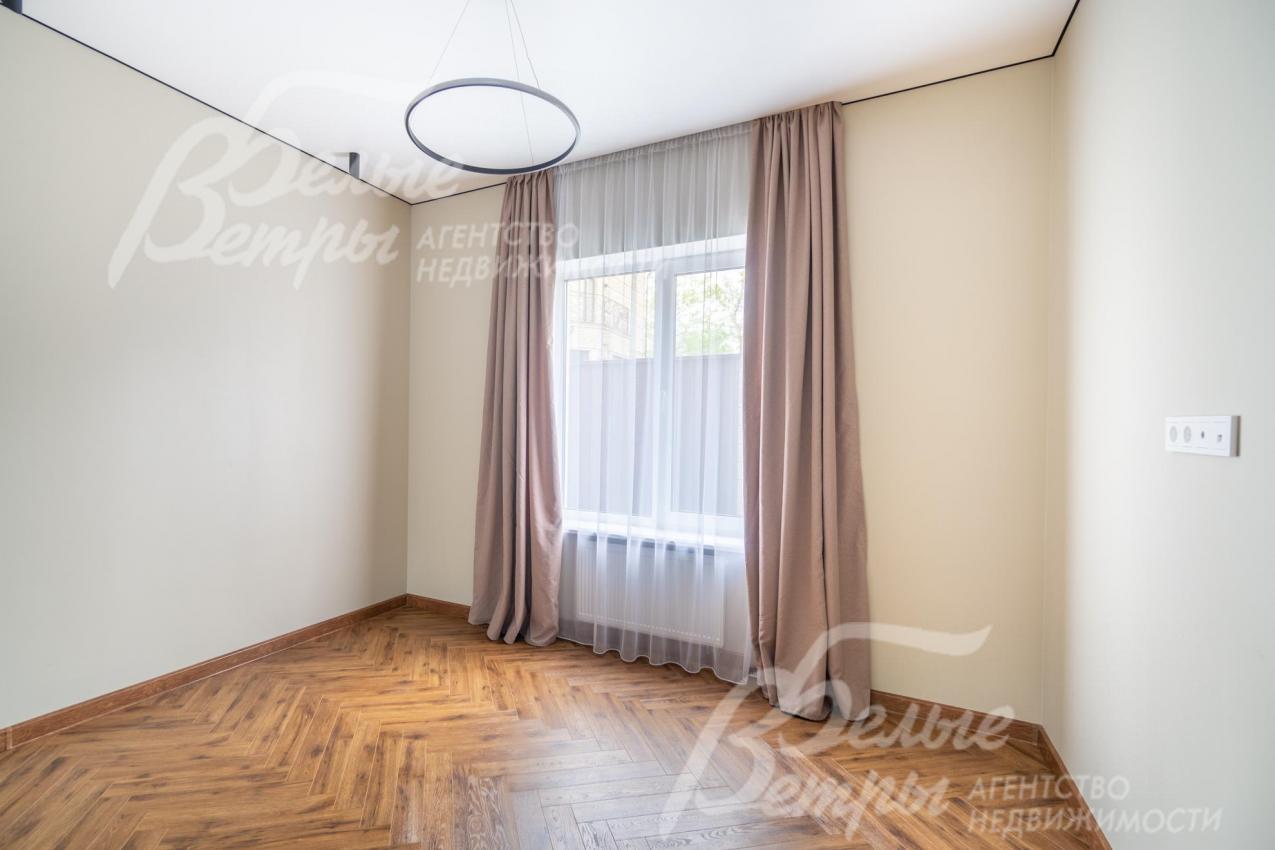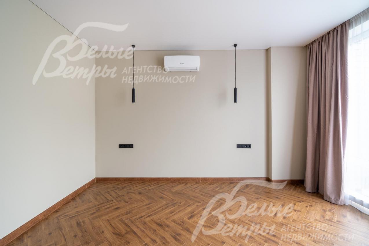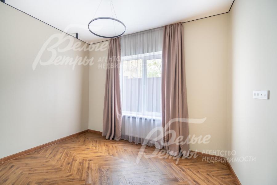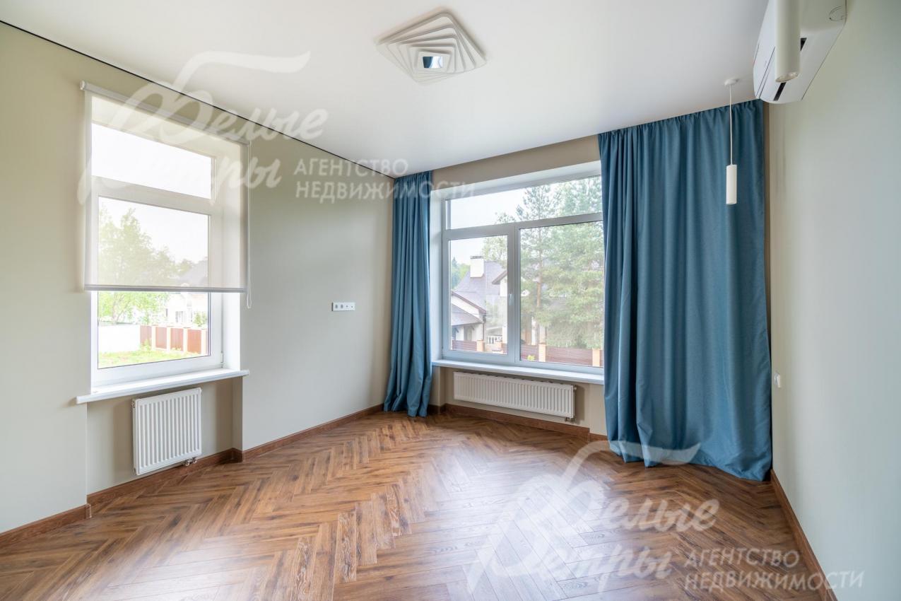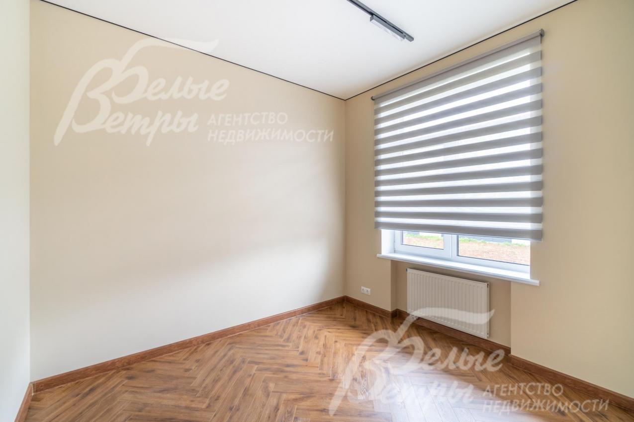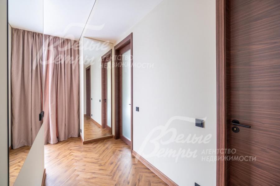 Описание внутренней отделки: интерьер выполнен в современном стиле в светло-бежевых тонах с использованием премиальных материалов и стильных дизайнерских решений. На стенах спален и общих помещений – декоративная антивандальная штукатурка в 3 слоя, имитирующая камень травертин, керамогранит (в санузлах), имитирующий слепок ригеля черного цвета, покраска стен в комнатах. На полу – крупноформатный керамогранит под мрамор на первом этаже и в санузлах на 2 этаже (под керамогранитом – тёплые водные полы), инженерная доска (кладка елочкой). Установлены натяжные потолки, двери из шпона натурального дерева высотой 2,4 м, подоконники под мрамор, трековое освещение черного цвета и светодиодная подсветка, электрика Schneider Electric черного цвета, интернет проводной и ТВ кабель для точек и до рабочих мест. На второй этаж ведёт монолитная лестница: ступени из керамогранита под мрамор с капиносом, ограждение – прозрачные перила с дубовыми поручнями. Гостиную украшает биокамин, отделанный керамогранитом
