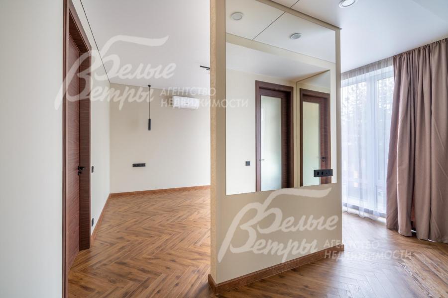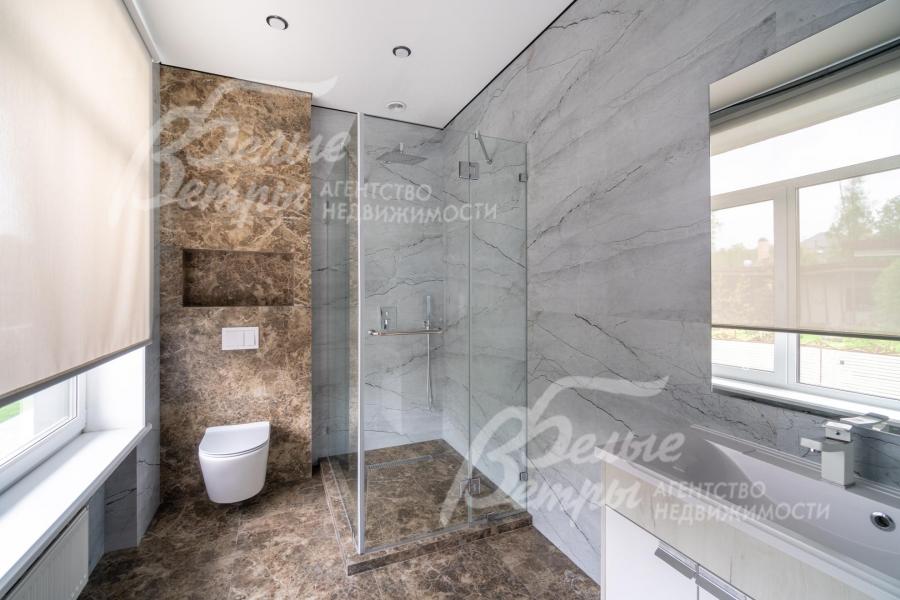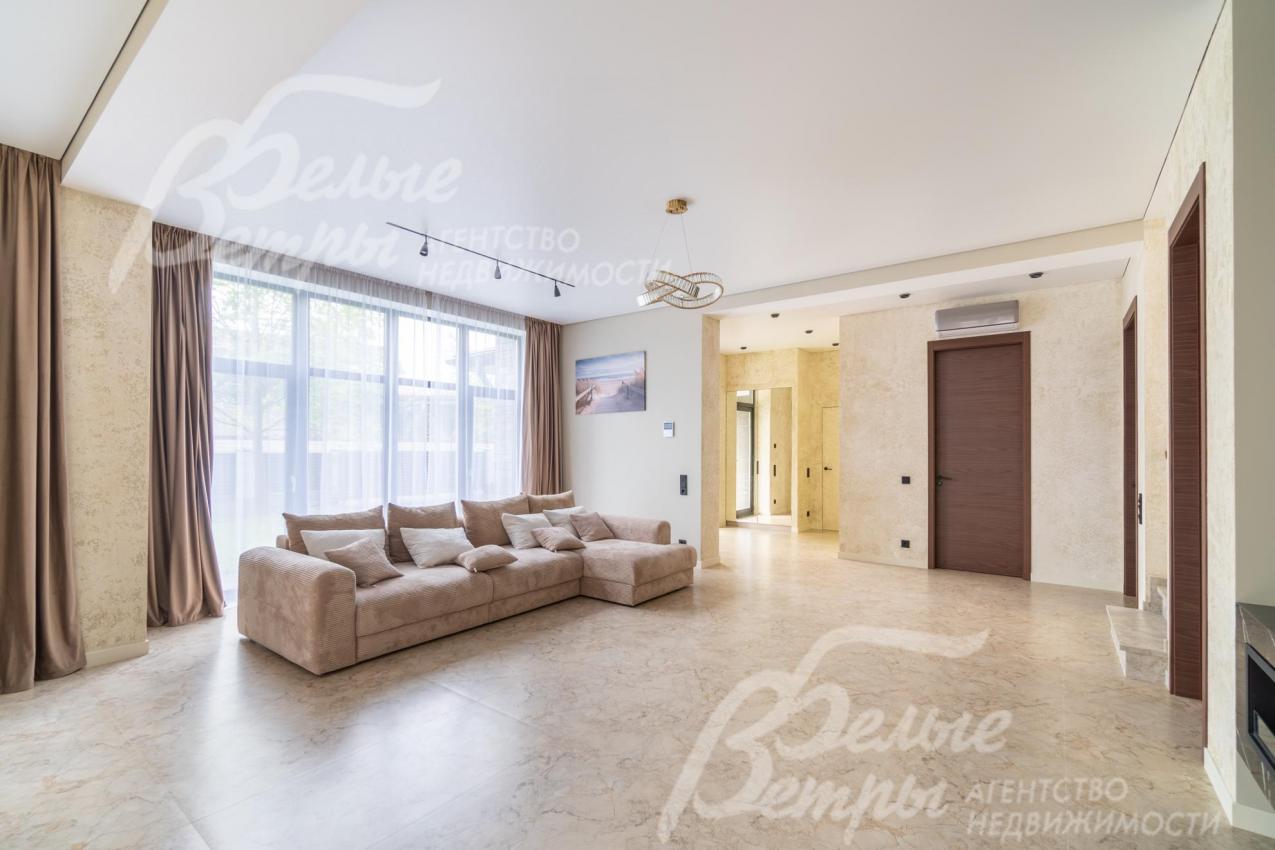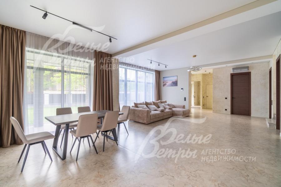 Новый готовый дом с отделкой и инженерными системами, построенный по дизайнерскому проекту в актуальном стиле архитектуры Фрэнка Ллойда Райта с акцентным панорамным фасадом и выразительной отделкой стен. Дом – с большой площадью остекления, высокими потолками, эффективной концепцией планировки, функциональной мансардой и стильным интерьером. Внутреннее оформление – в светло-бежевых оттенках с использованием крупноформатного керамогранита «под мрамор», декоративной штукатурки, имитирующей травертин, высоких дверей, биокамина. Дом стоит на компактном облагороженном участке, не требующем ухода и вложений, с парковкой, газоном, взрослым дубом и декоративными деревьями. Участок находится в престижной локации: в охраняемом коттеджном посёлке у леса недалеко от метро и МКАД.