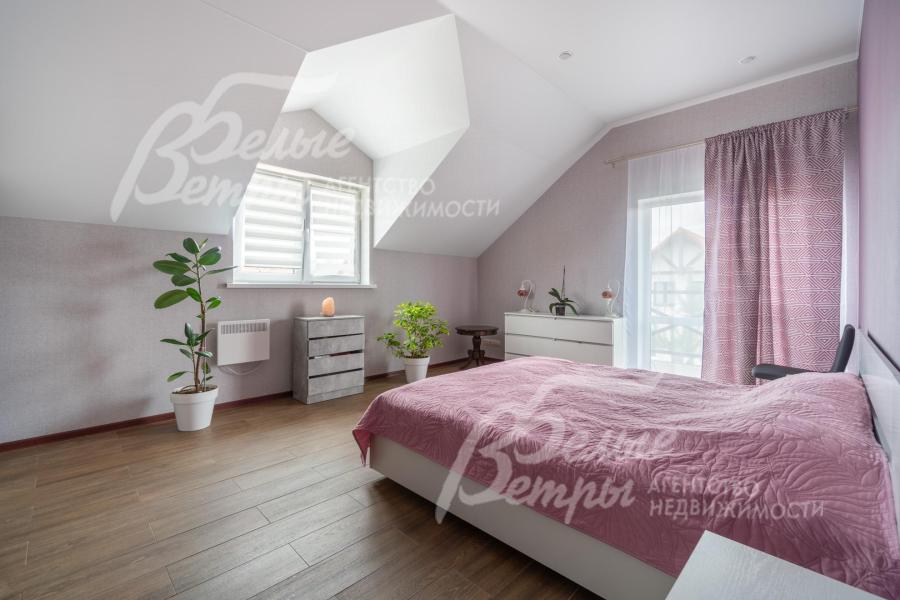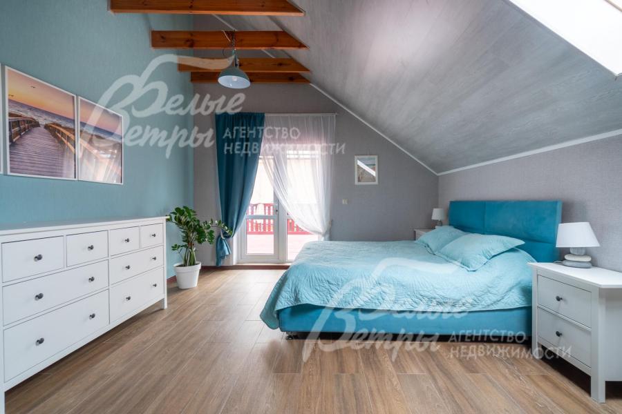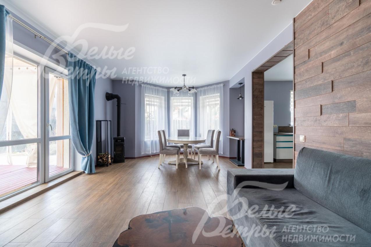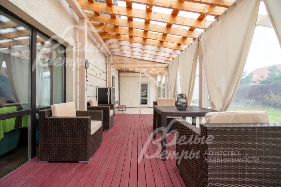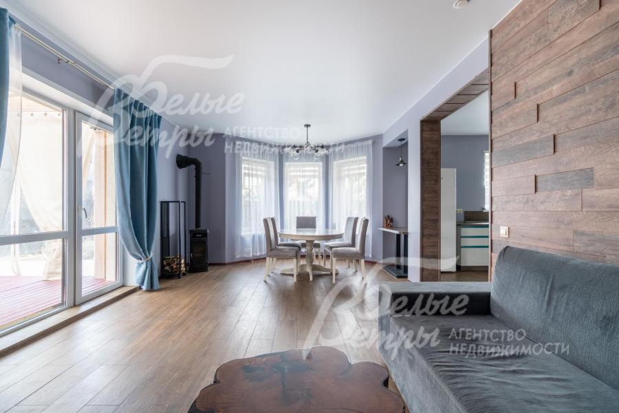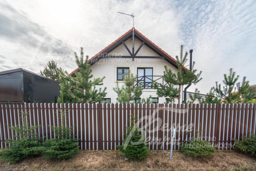 Меблированный дом с привлекательной архитектурой в стиле шале. В доме — удобная функциональная планировка: предусмотрено 4 спальни, одна из них расположена на первом этаже, а общая площадь крытых террас — более 60 кв.м. Одна из террас — на втором этаже двухэтажной пристройки, в которой также запланированы баня с комнатой отдыха. В доме выполнена стильная уютная отделка уровня бизнес-класса, весь пол – тёплый, с водяным подогревом. Дом стоит на благоустроенном участке в престижной локации в 100 м от леса и в 100 в от реки. Участок находится в охраняемом обжитом коттеджном посёлке с рекреационными зонами, центральными коммуникациями, в пешей доступности – остановка общественного транспорта и инфраструктура Новой Москвы.