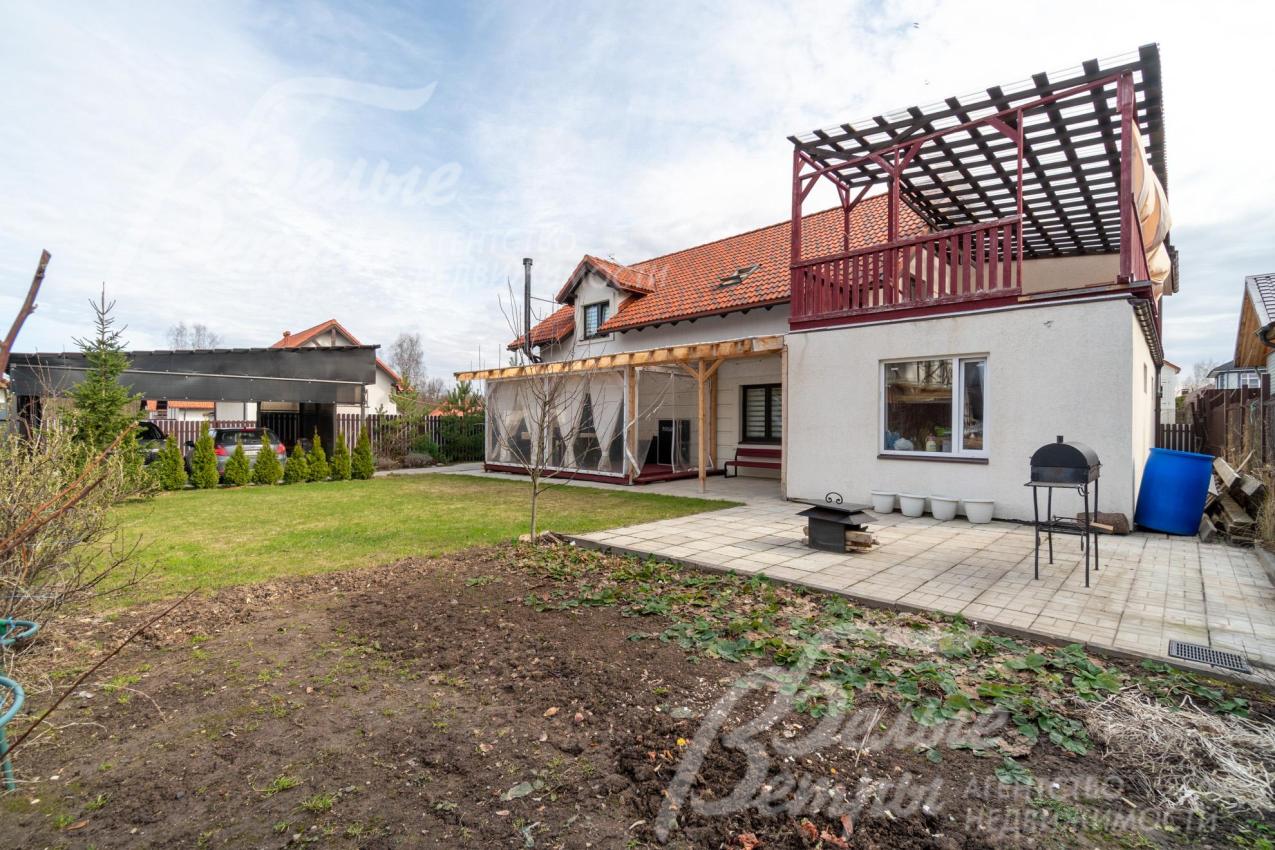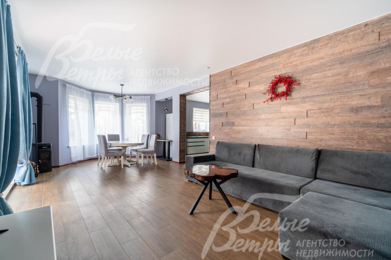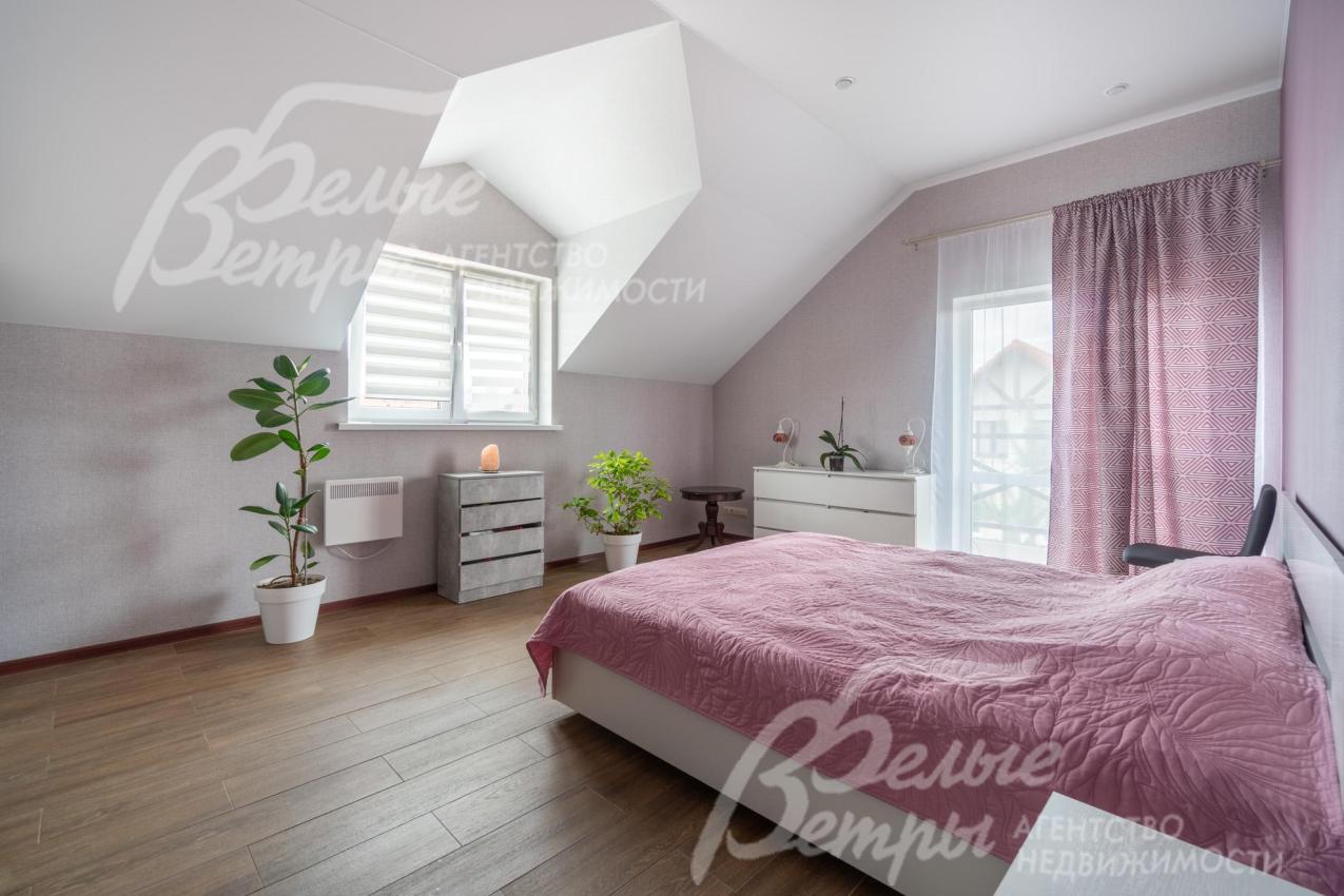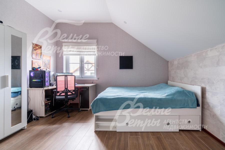 Меблированный дом с привлекательной архитектурой в стиле шале. В доме — удобная функциональная планировка: предусмотрено 4 спальни, одна из них расположена на первом этаже, а общая площадь крытых террас — более 60 кв.м. Одна из террас — на втором этаже двухэтажной пристройки, в которой также запланированы баня с комнатой отдыха. В доме выполнена стильная уютная отделка уровня бизнес-класса, весь пол – тёплый, с водяным подогревом. Дом стоит на благоустроенном участке в престижной локации в 100 м от леса и в 100 в от реки. Участок находится в охраняемом обжитом коттеджном посёлке с рекреационными зонами, центральными коммуникациями, в пешей доступности – остановка общественного транспорта и инфраструктура Новой Москвы.