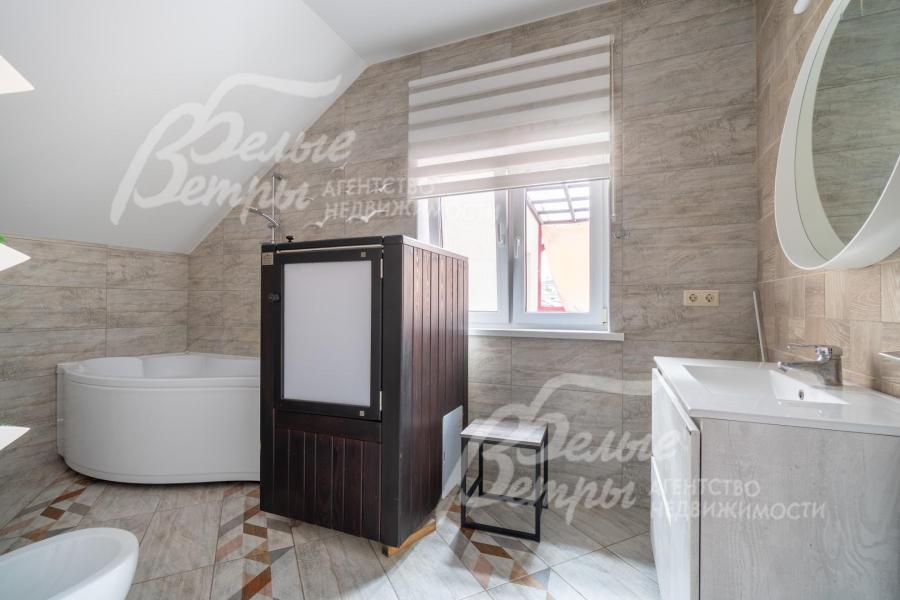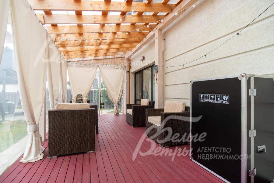 Дополнительные строения: двухэтажная пристройка формата «white box» общей площадью 75 кв.м, включающая баню. На втором этаже расположена комната площадью 18 кв. м, которая имеет выход на террасу второго этажа