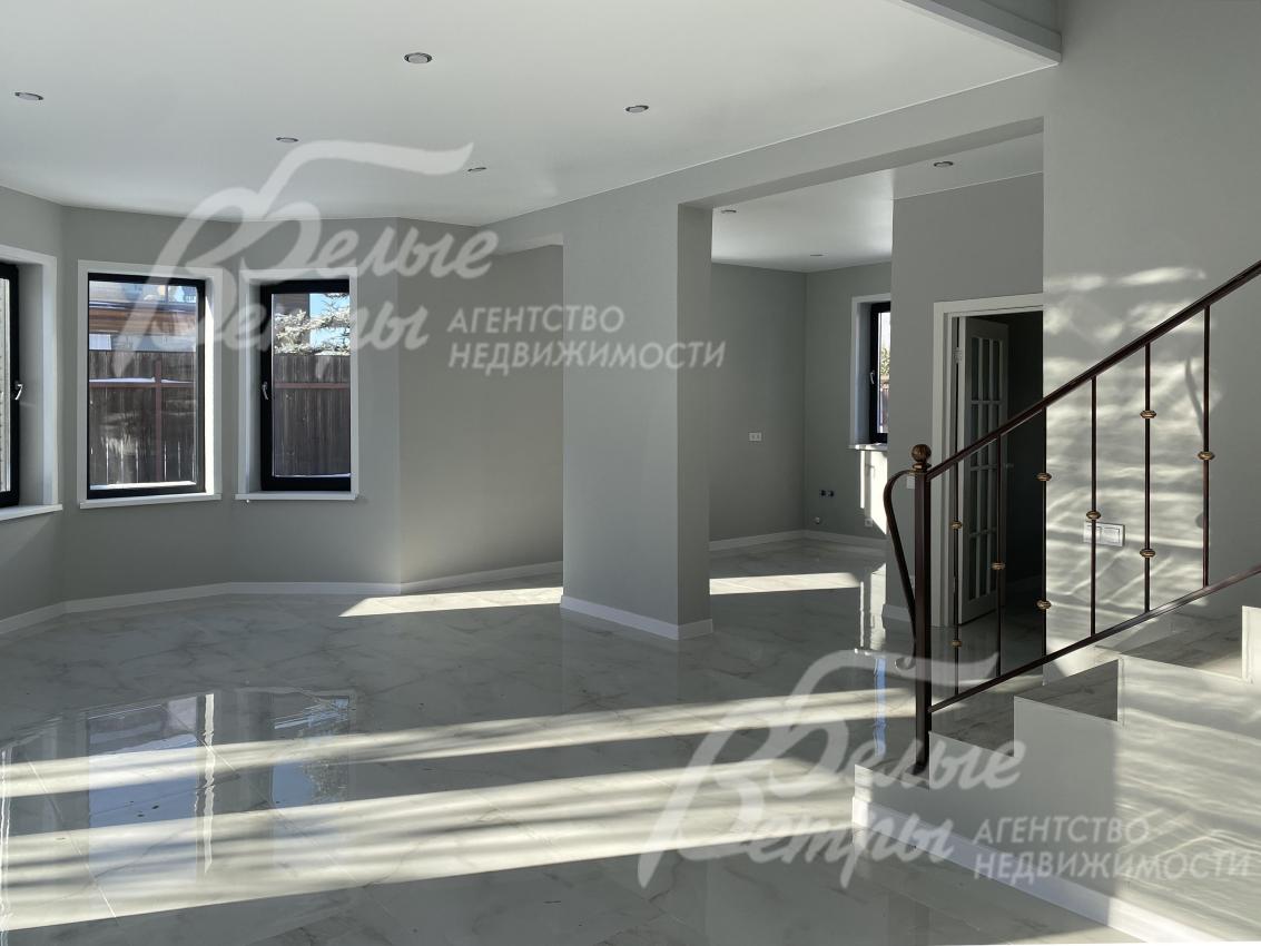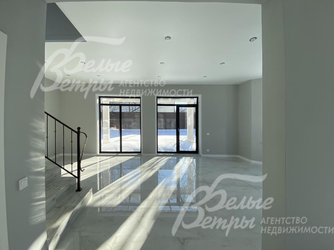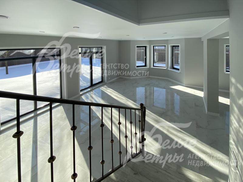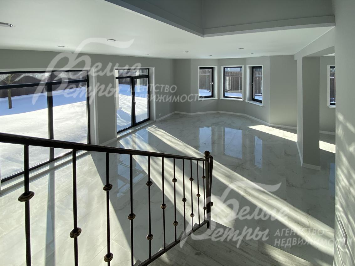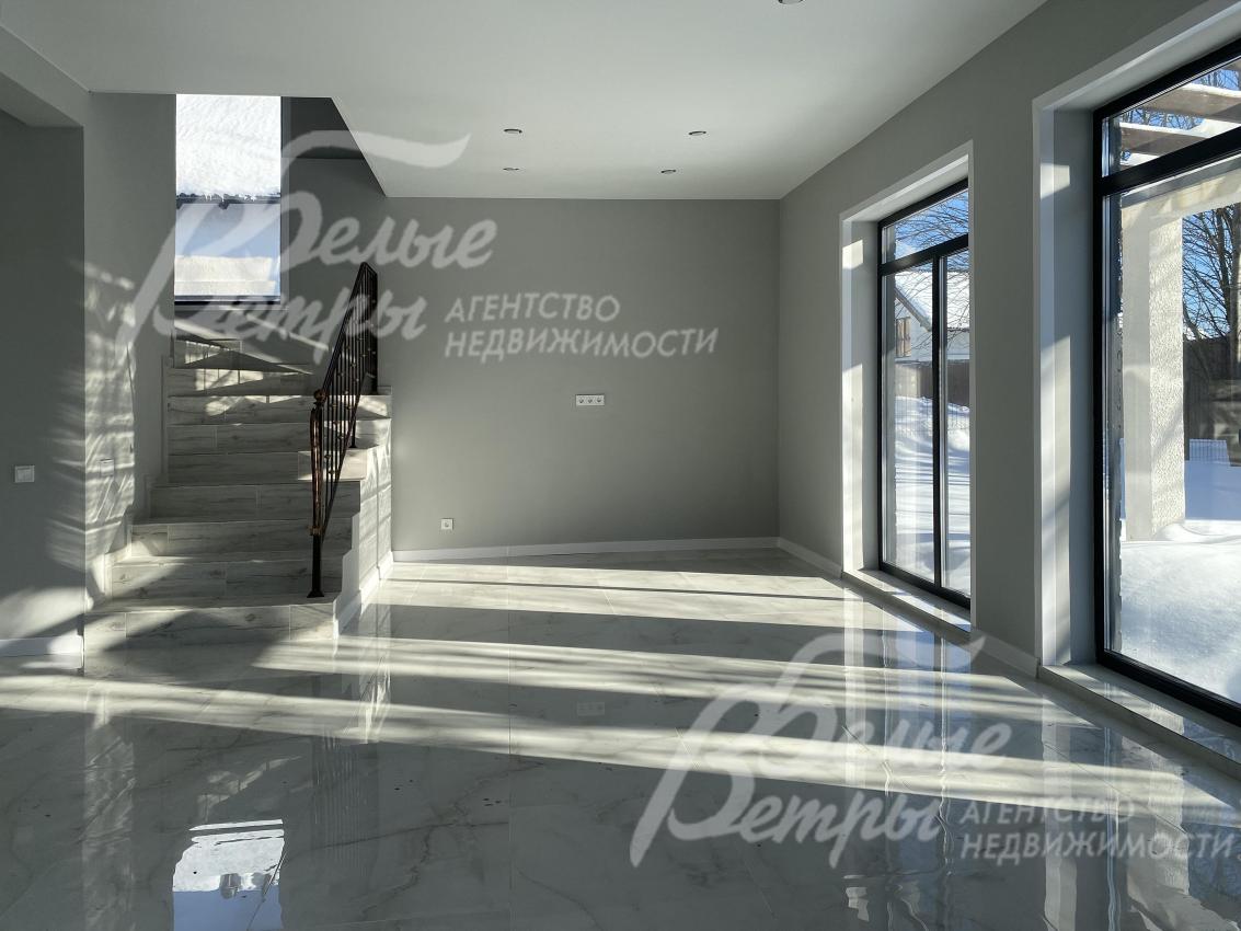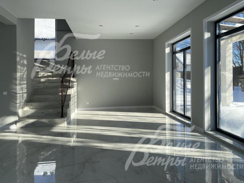 Описание внутренней отделки: выполнена современная отделка бизнес-класса. Весь пол - керамогранит с водяным подогревом, стены санузлов и части других помещений - плитка до потолка. В гостиной - остекление от пола. Стены окрашены краской Tikkurila eurocolor. Дорогая входная дверь со стеклом и ковкой. Натяжные потолки со встроенными светильниками. Лестница монолит, отделка ступеней керамогранит, перила художественная ковка. Установлена качественная сантехника. Теплые полы на всех этажах. Межкомнатные двери ProfilDoors,шпонированные окрашены белой краской, высокие плинтуса того же цвета. Подоконники ПВХ, ламинированные под цвет окон.