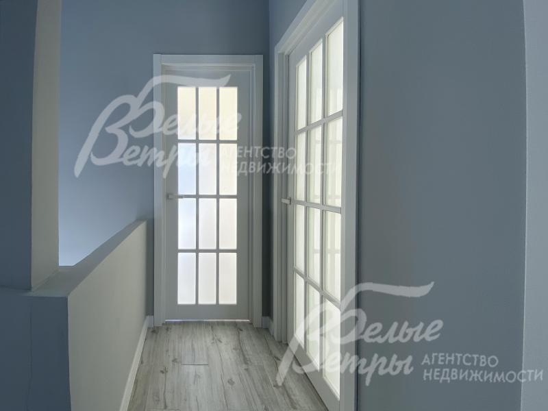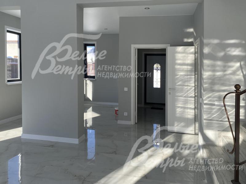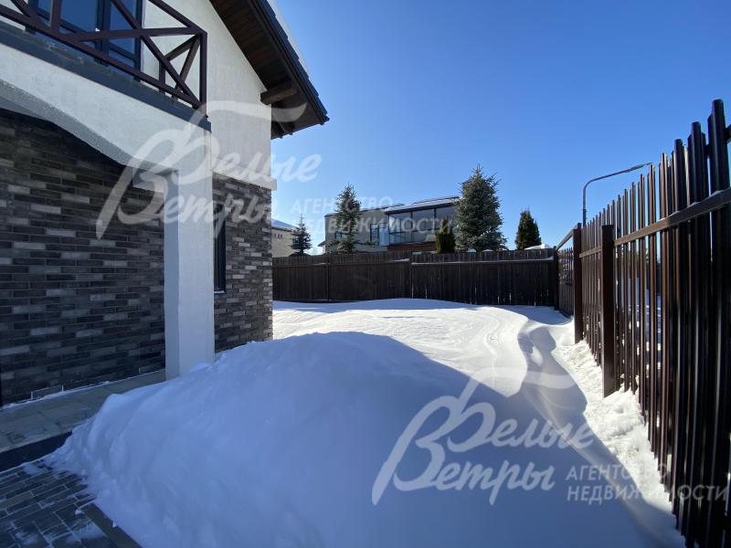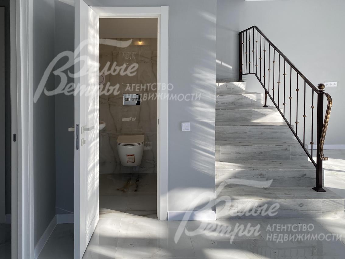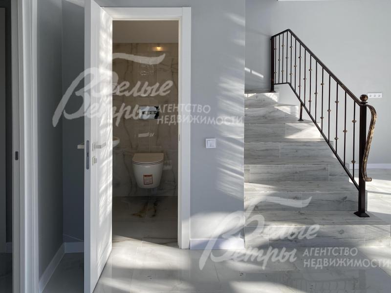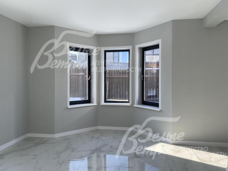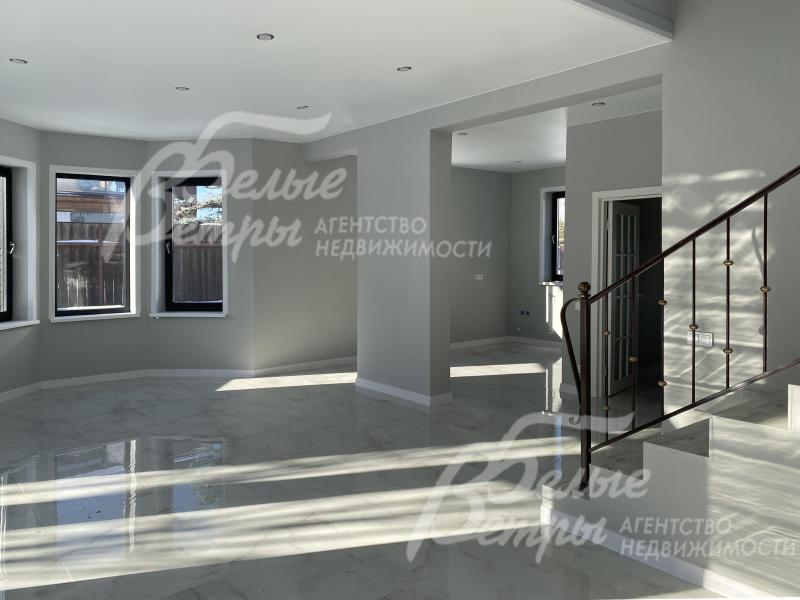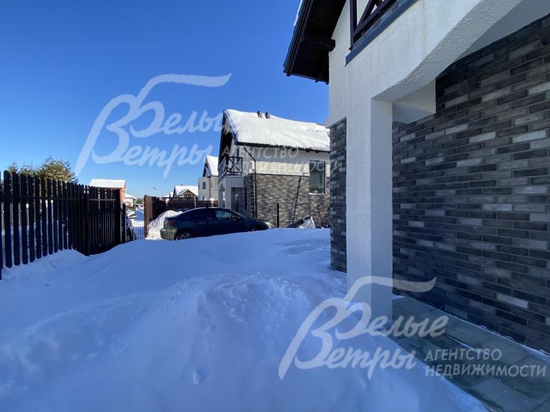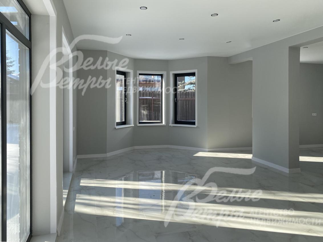 Описание внутренней отделки: выполнена современная отделка бизнес-класса. Весь пол - керамогранит с водяным подогревом, стены санузлов и части других помещений - плитка до потолка. В гостиной - остекление от пола. Стены окрашены краской Tikkurila eurocolor. Дорогая входная дверь со стеклом и ковкой. Натяжные потолки со встроенными светильниками. Лестница монолит, отделка ступеней керамогранит, перила художественная ковка. Установлена качественная сантехника. Теплые полы на всех этажах. Межкомнатные двери ProfilDoors,шпонированные окрашены белой краской, высокие плинтуса того же цвета. Подоконники ПВХ, ламинированные под цвет окон.