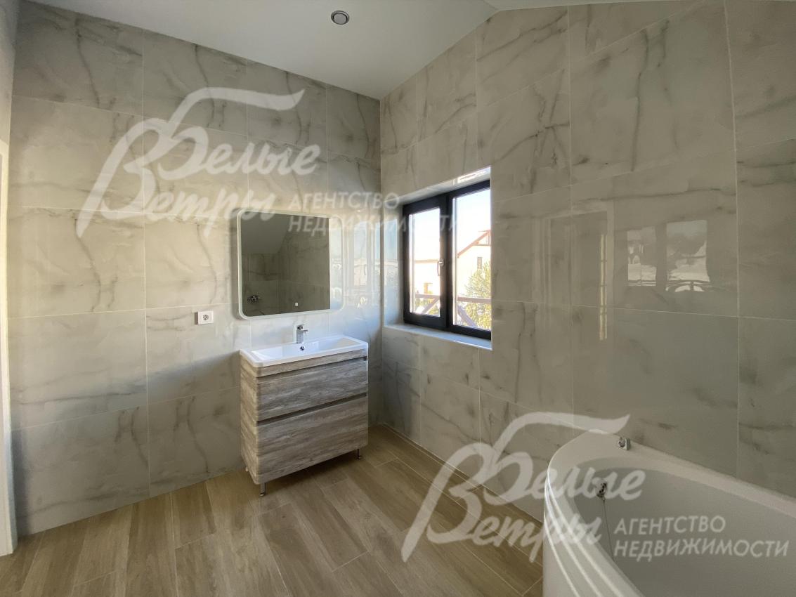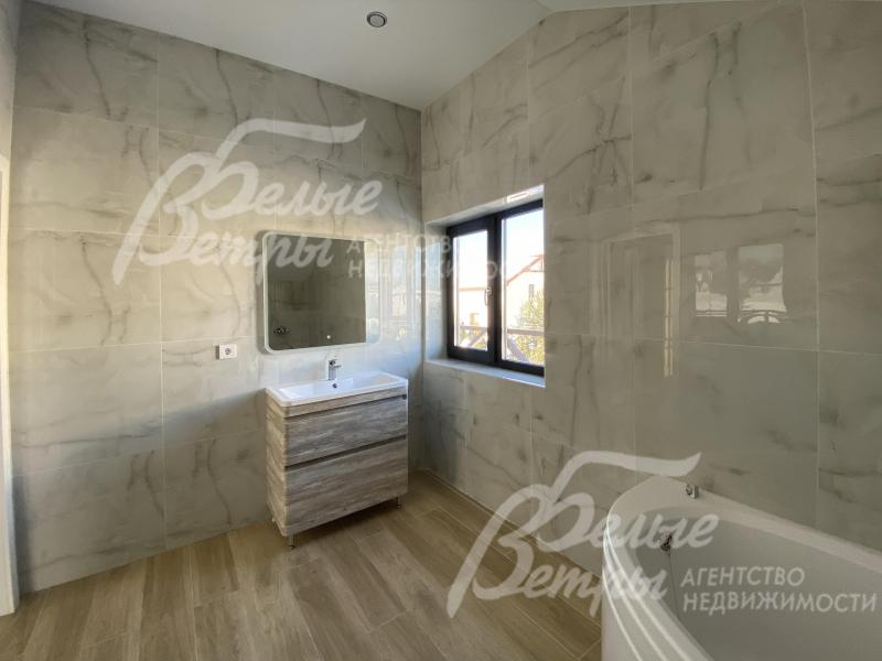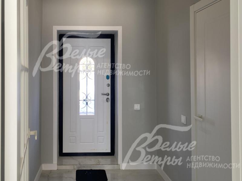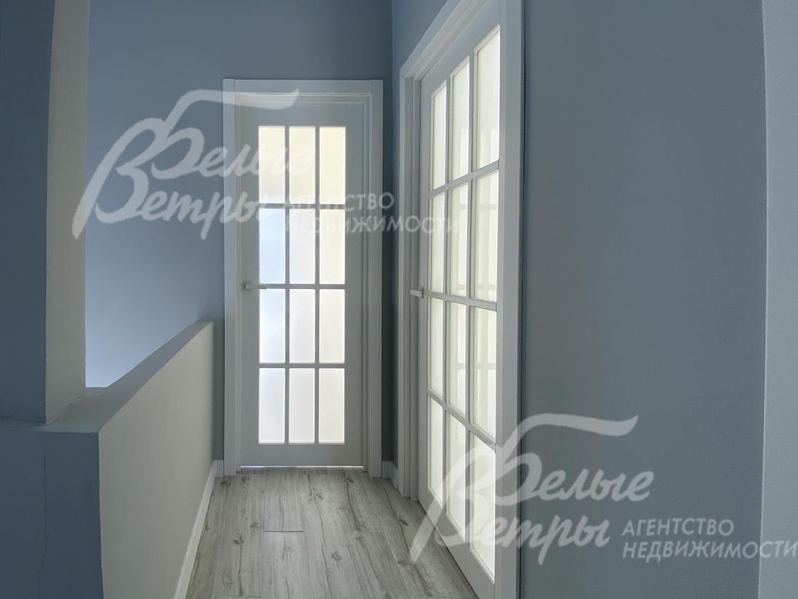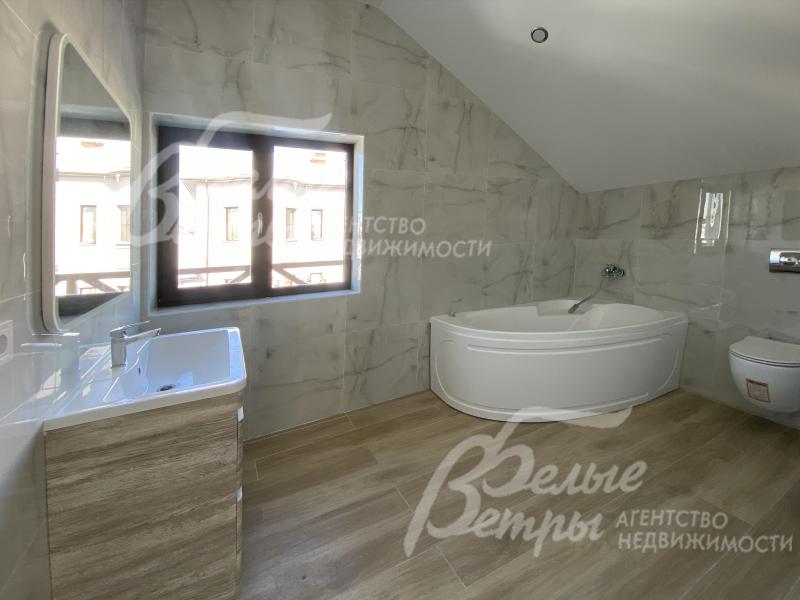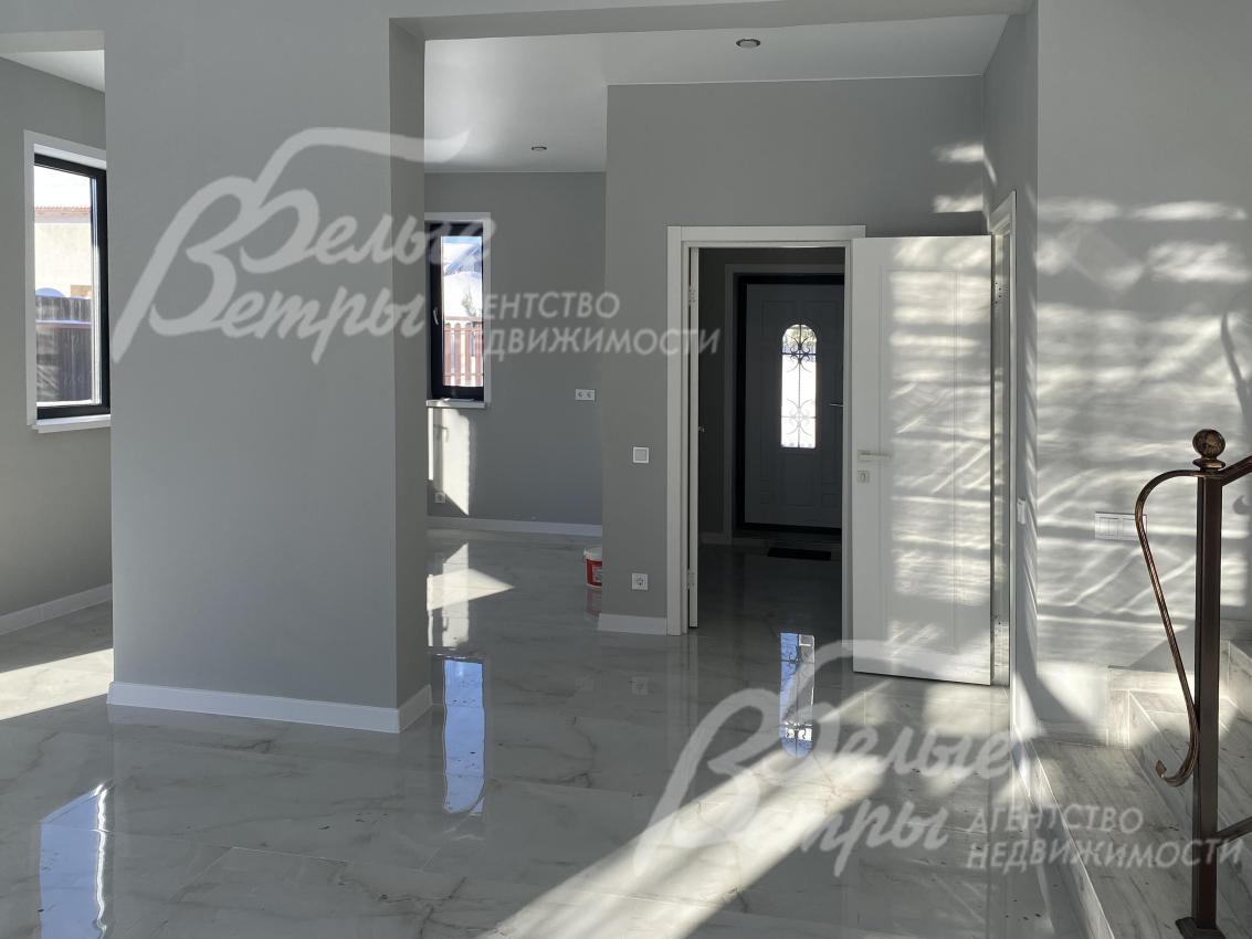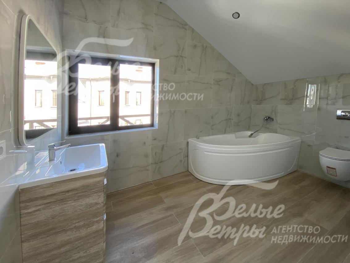 Описание внутренней отделки: выполнена современная отделка бизнес-класса. Весь пол - керамогранит с водяным подогревом, стены санузлов и части других помещений - плитка до потолка. В гостиной - остекление от пола. Стены окрашены краской Tikkurila eurocolor. Дорогая входная дверь со стеклом и ковкой. Натяжные потолки со встроенными светильниками. Лестница монолит, отделка ступеней керамогранит, перила художественная ковка. Установлена качественная сантехника. Теплые полы на всех этажах. Межкомнатные двери ProfilDoors,шпонированные окрашены белой краской, высокие плинтуса того же цвета. Подоконники ПВХ, ламинированные под цвет окон.
