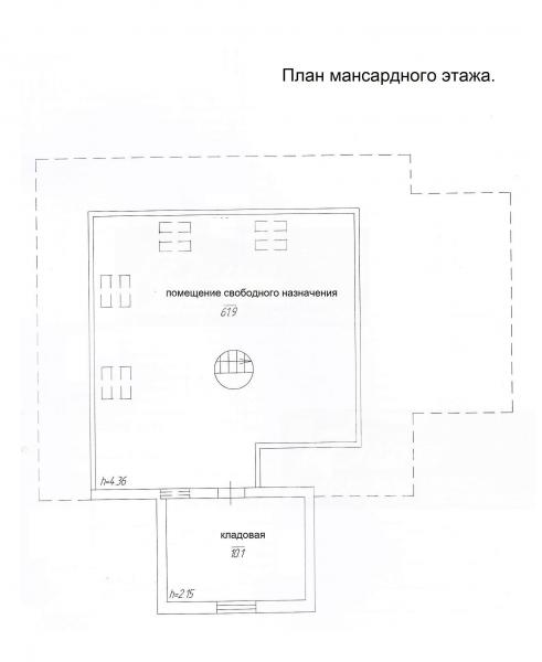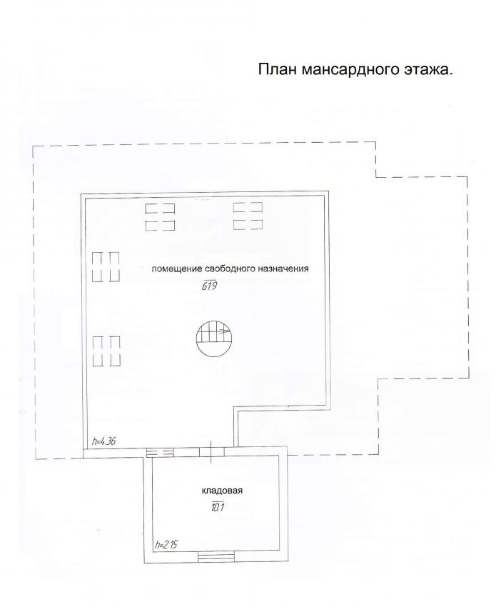 3-ий этаж: гардеробная 10.1 кв.м, помещение свободного назначения 61.9 кв.м, (потолки от 1.8 м до 4.5 м)