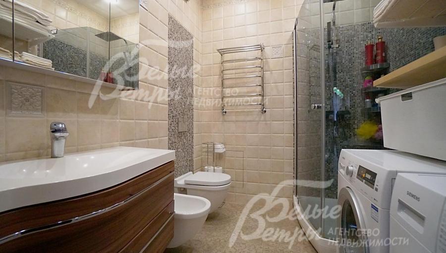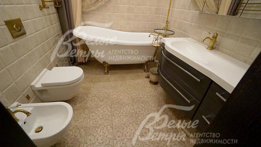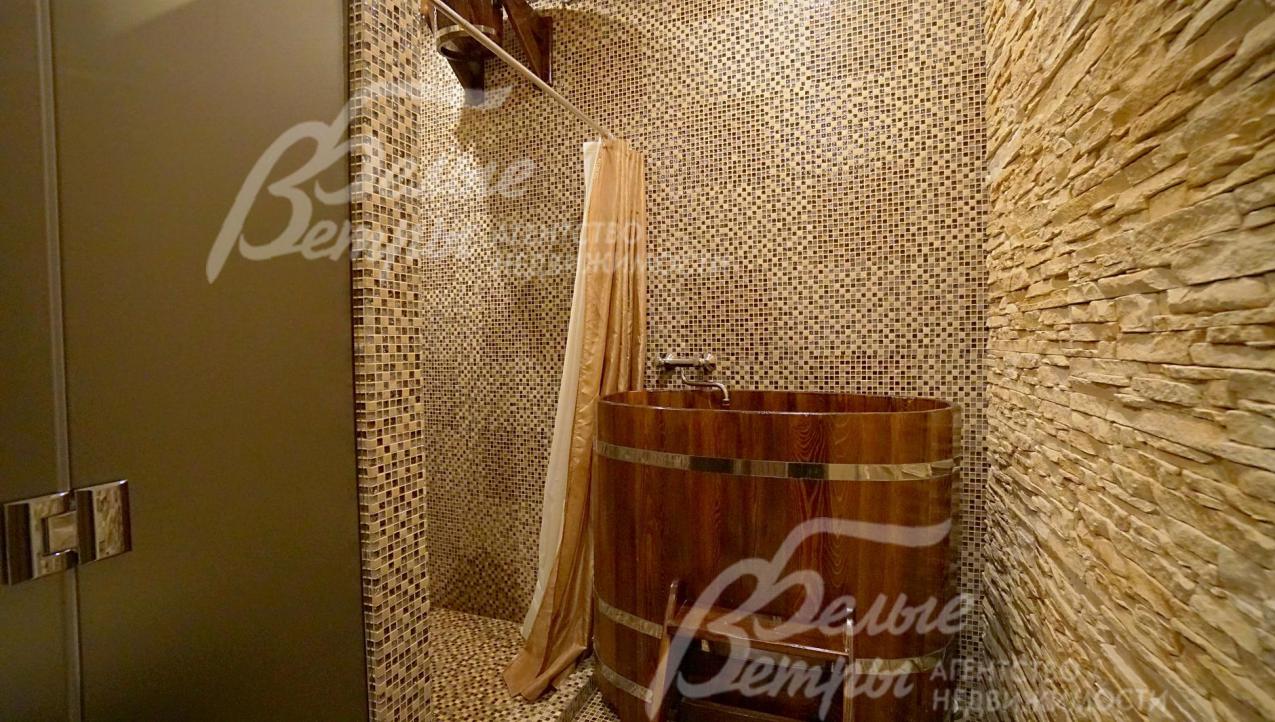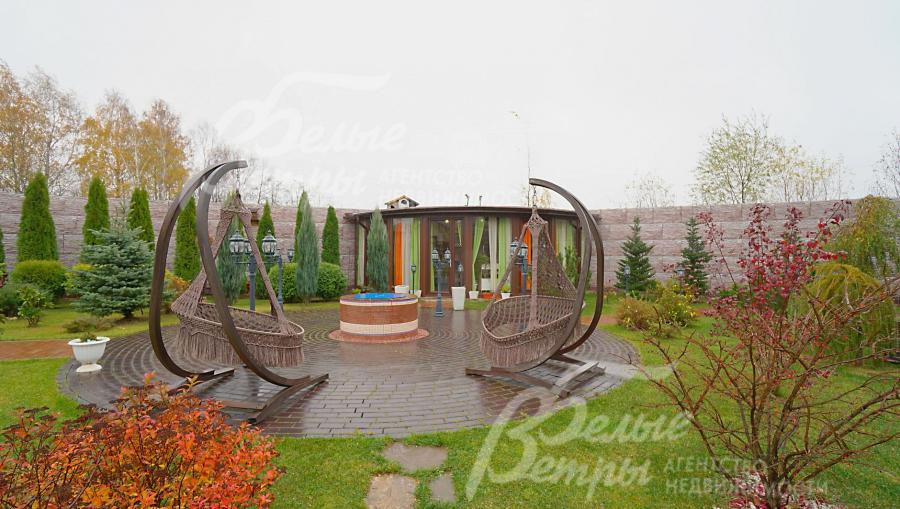 Мебель, оборудование: дом обставлен дорогой дизайнерской мебелью, украшен красивым дорогим текстилем, люстрами и светильниками, кухня из натурального дерева (дубовая), столешница -искусственный камень, установлена вся бытовая и встроенная техника BOSCH (посудомоечная машина 40 см., СВЧ, духовка, плита комбинированная). Стиральная машина и сушильная машина фирмы SIEMENS. Кинотеатр со светоотражающим экраном из Америки