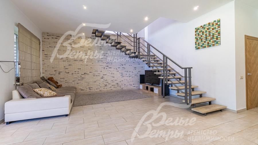 Описание внутренней отделки: выполнена отделка под ключ в стиле современной классики. Стены окрашены. Пол: 1 этаж - плитка производства Италия, 2 этаж - ламинат, в санузлах - плитка. Лестница: широкая, с удобным подъемом, стальной каркас, ступени деревянные (дуб). Потолки отделаны гипсокартоном с встроенным освещением. Радиаторы стальные панельные Kermi. Все коммуникации разведены под ключ, теплые полы на всем 1-м этаже и в санузлах 1-го и 2-го этажей. Розетки Legrand.