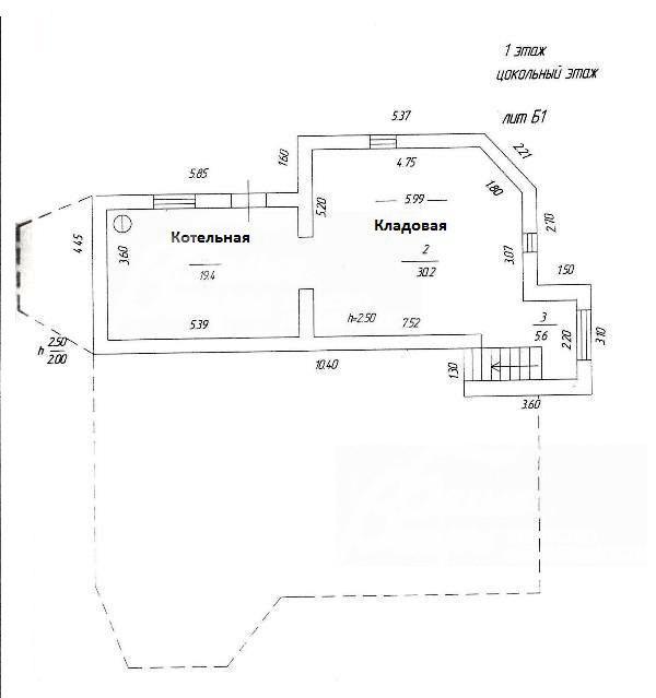 Цоколь: коридор, котельная 19 кв.м, кладовая 30 кв.м