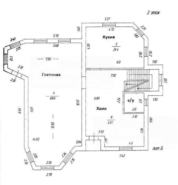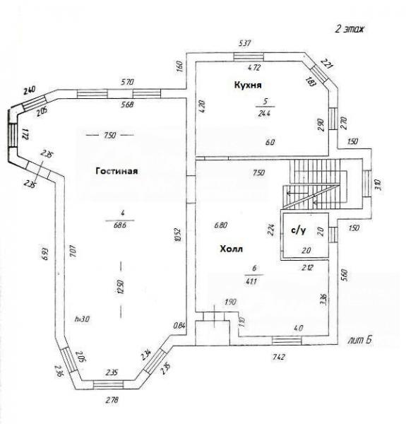 1-ый этаж: холл 41 кв.м, гостиная 68 кв.м, кухня 24 кв.м, с/узел