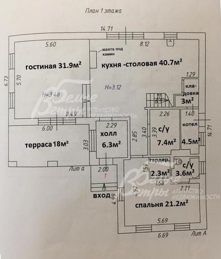1-ый этаж: кухня-столовая 41 кв.м, гостиная 31 кв.м, спальня 21 кв.м, кладовка 3 кв.м, холл 6 кв.м, терраса 5 кв.м, котельная 4.5 кв.м, санузел 7.4 кв.м, гардеробная 2 кв.м, санузел 3.6 кв.м;