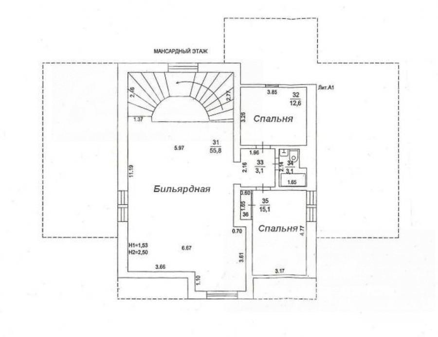 3-ий этаж: бильярдная 56 кв.м с профессиональным оборудованием (русский бильярд №12), спальня 15 кв.м, спальня 12.5 кв.м, с/узел 3 кв.м,