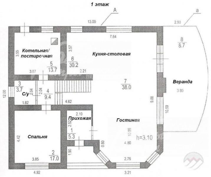 1-ый этаж: прихожая 6 кв.м, гостиная 40 кв.м совмещенная с кухней-столовой 27.5 кв.м, летняя веранда 27 кв.м, спальня 17.5 кв.м, с/узел 4 кв.м, котельная с постирочной 14 кв.м
