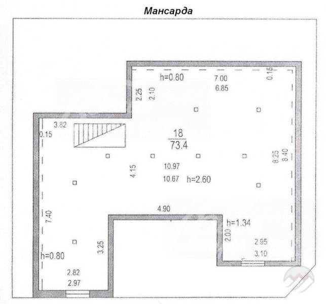 3-ий этаж: мансарда - помещение свободного назначения 75 кв.м