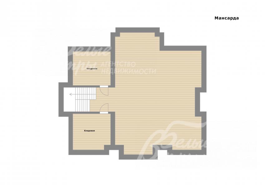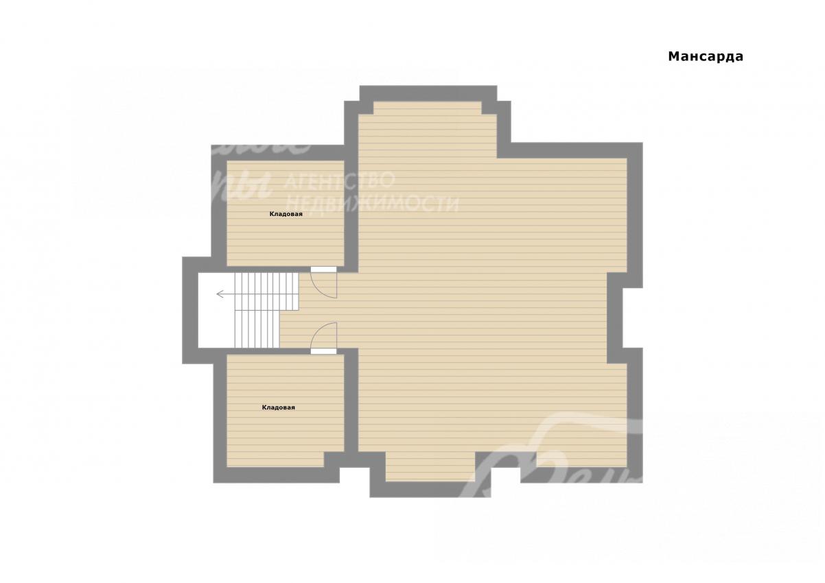 3-ий этаж: Мансардный этаж: две кладовые, свободное помещение – хобби территория, может быть разного назначения. Высокая кровля с мансардным окном.
