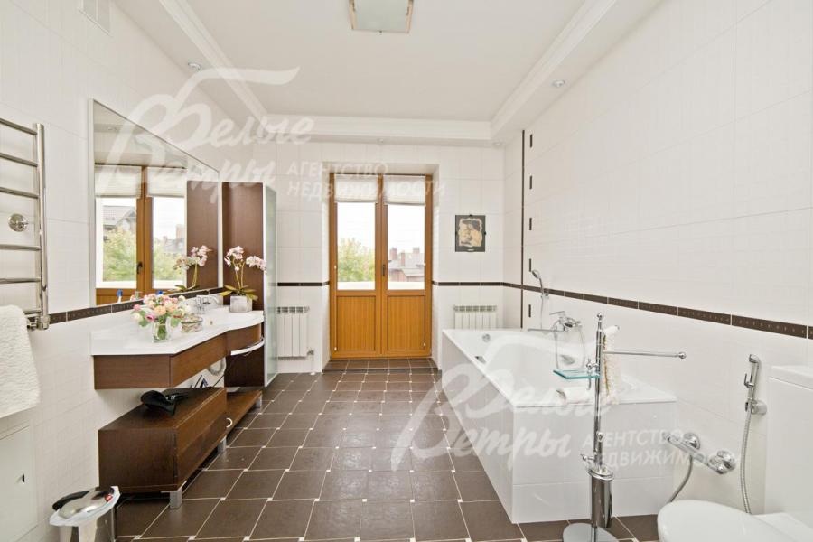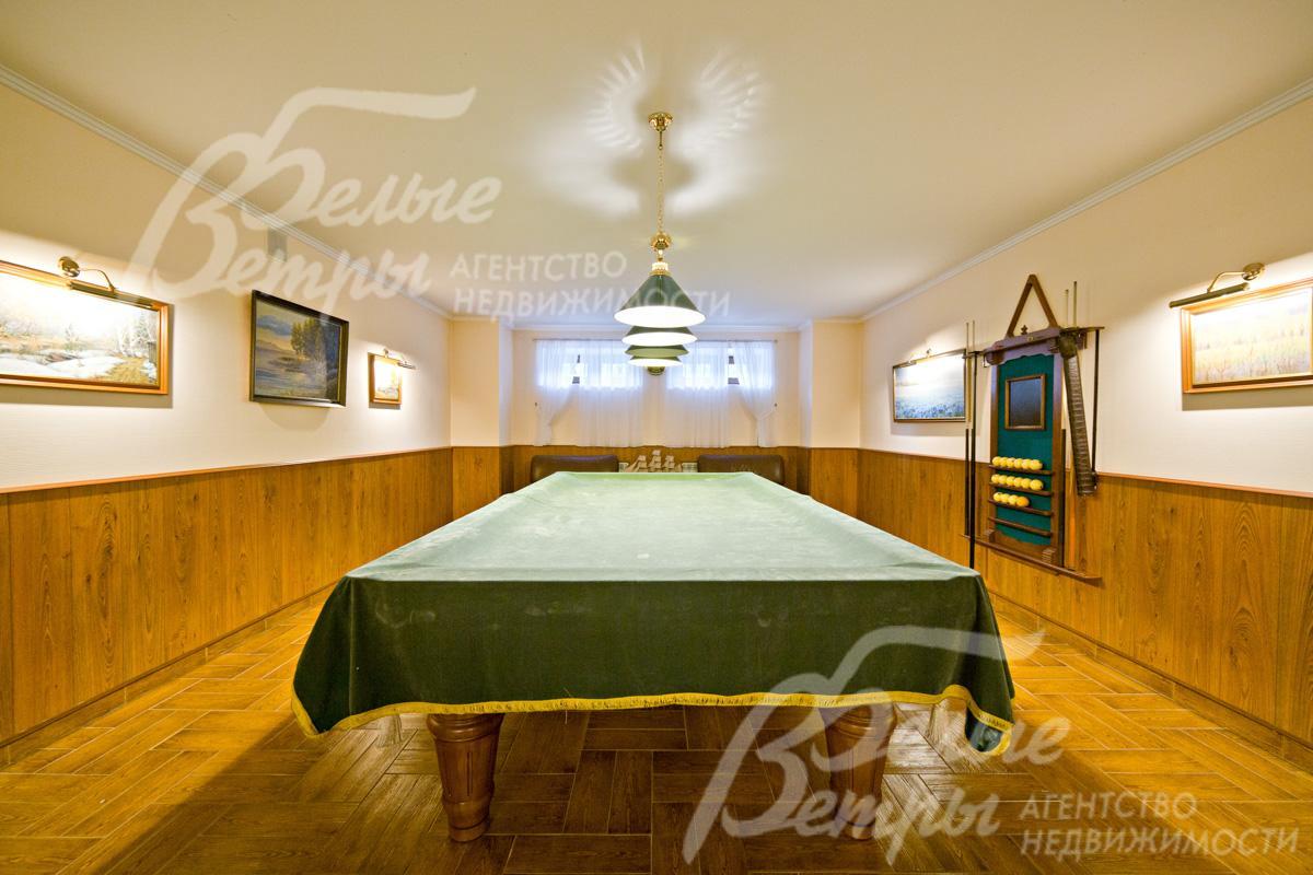 Мебель, оборудование: дом полностью меблирован! Кухонная мебель изготовлена на заказ из массива дерева - Италия. Полный комплект встроенной бытовой техники. Кровати, тумбы, шкафы, гардеробные - из массива дерева подобраны из коллекций итальянских производителей. Бильярдный стол-русский бильярд от компании "Русский бильярд". Бассейн - от компании "Марко-Пул". Установлены чугунная ванна, сантехника Jacob Delafon Франция и других европейских марок. Ванна гидромассажная (джакузи) «HotSpring» (Канада).