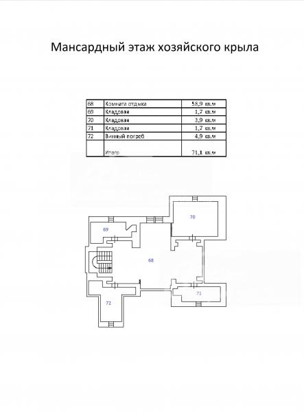 3-ий этаж: Основной дом: мансарда - зона отдыха с кольянной и большими нишами, возможно организовать винную комнату и т.п.
