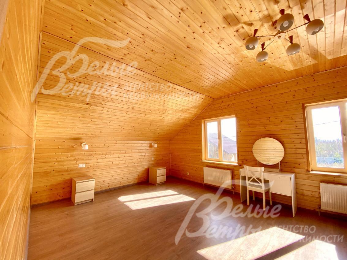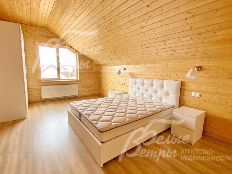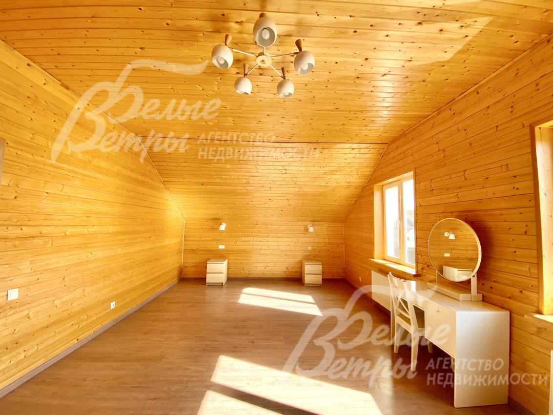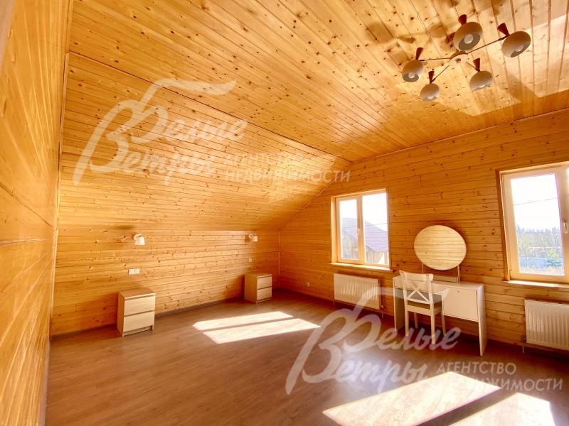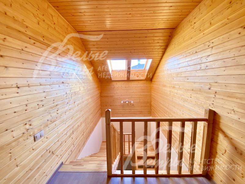 Описание внутренней отделки: на 1-м этаже стены окрашены, оклеены обоями, отделаны плиткой в санузлах; на 2-м этаже вагонка; полы на 1-м этаже ламинат, плитка, доска на террасе; на 2-м этаже ламинат, плитка в санузлах; лестница - массив сосны; потолки на 1-м этаже натяжные, на 2-м отделан ГКЛ окрашен ; все коммуникации разведены по дому; сантехника установлена; двери ламинированные;
